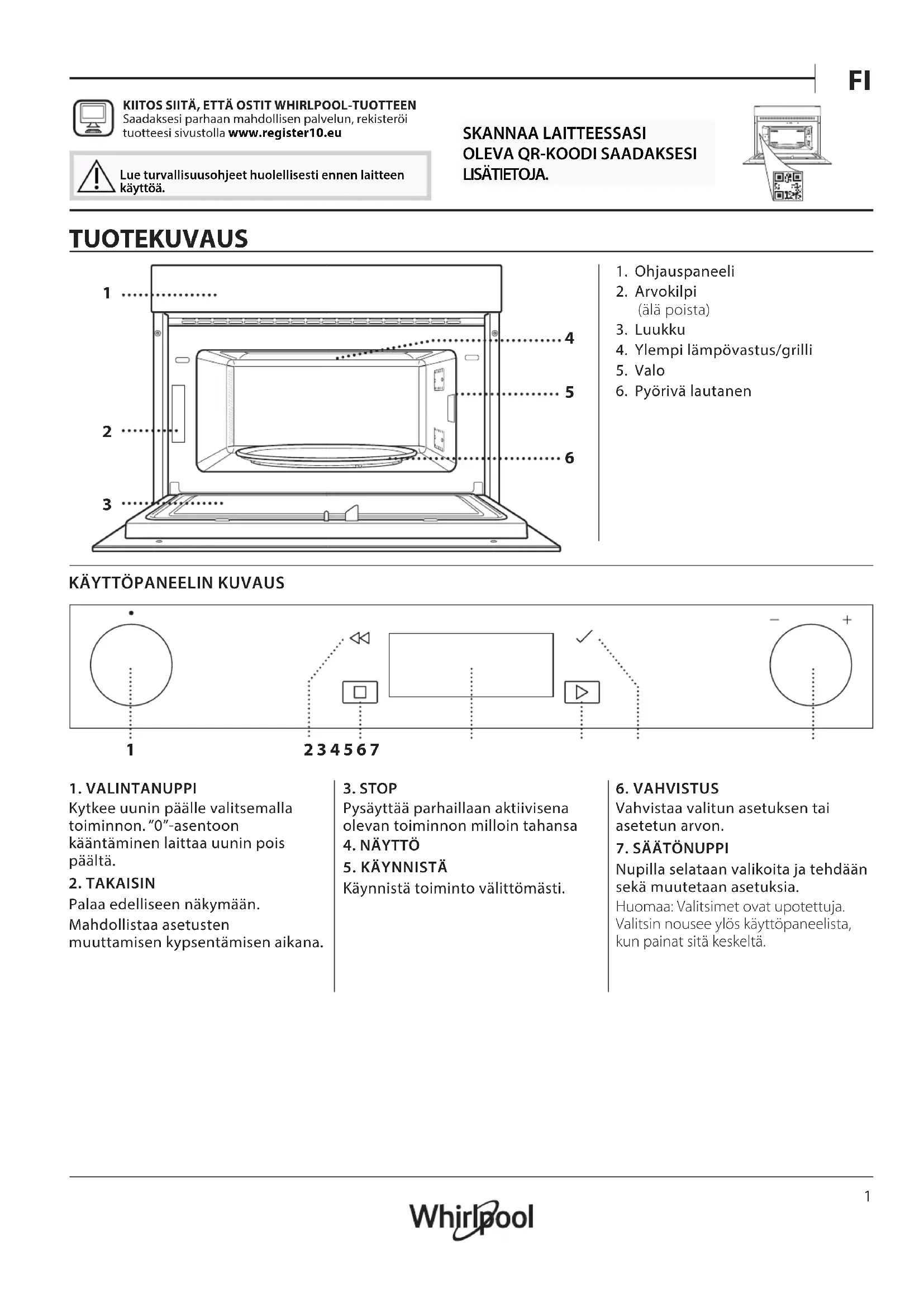 WMD7O4TSG - Mikroaaltouuni WHIRLPOOL - Ilmainen käyttöohje ja opas