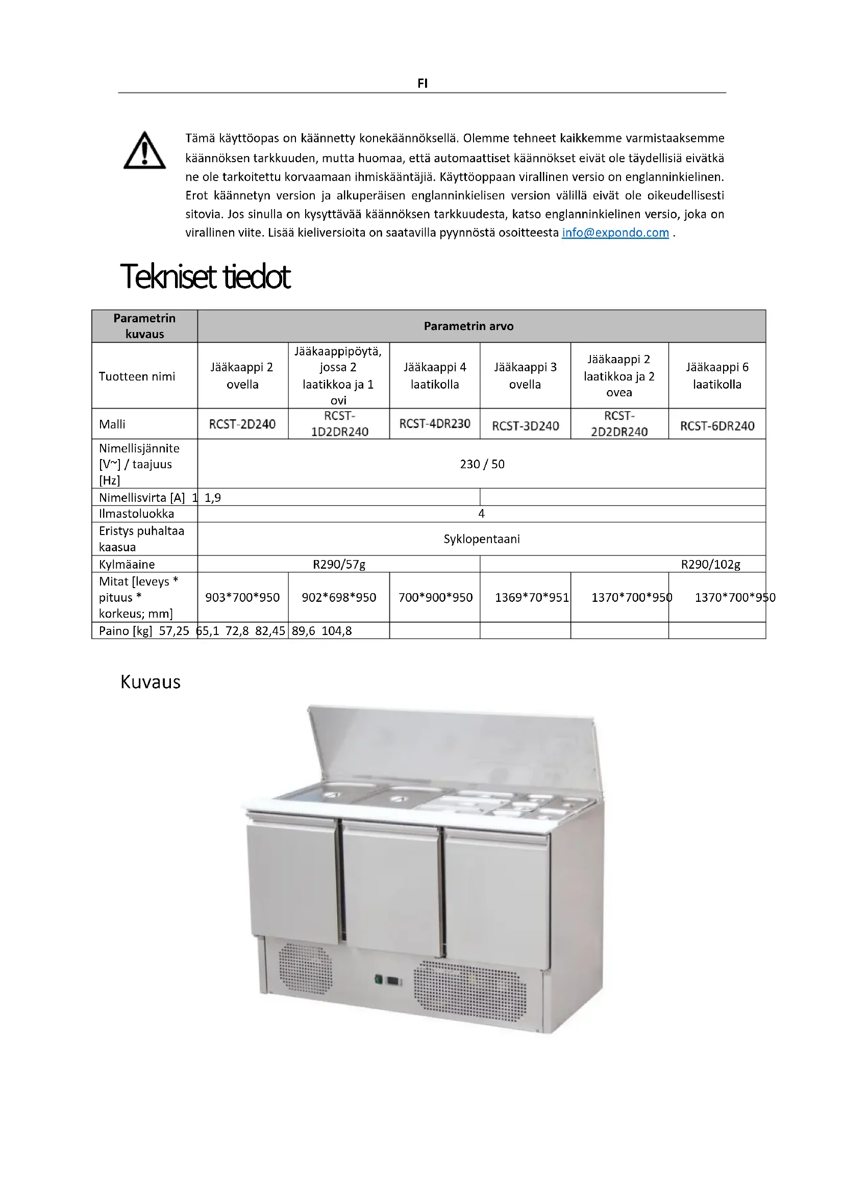 Tämä käytöopas on kännetty konekännöksellä. Olemme tehneet kaikkemme varmistaaksemme kännöksen tarkkuuden, mutta huomaa, etta automaattiset kännökset eivat ole taydellisiaeivätke ne ole tarkoitetu korvaamaan ihmiskäntäjä. Käytöoppaan virallinen versio on englannikielen. Erot kännetyn version ja alkuperäisen englanninkielisen version valillä eivat ole oikeudellisesti sitovia. Jos sinulla on kysytävää kännöksen tarkkuudesta, katso englanninkielen versio, joka on virallinen viite. Lisää kielfiversioita on saatavilla pyynnostä osoitteesta info@expondo.com.