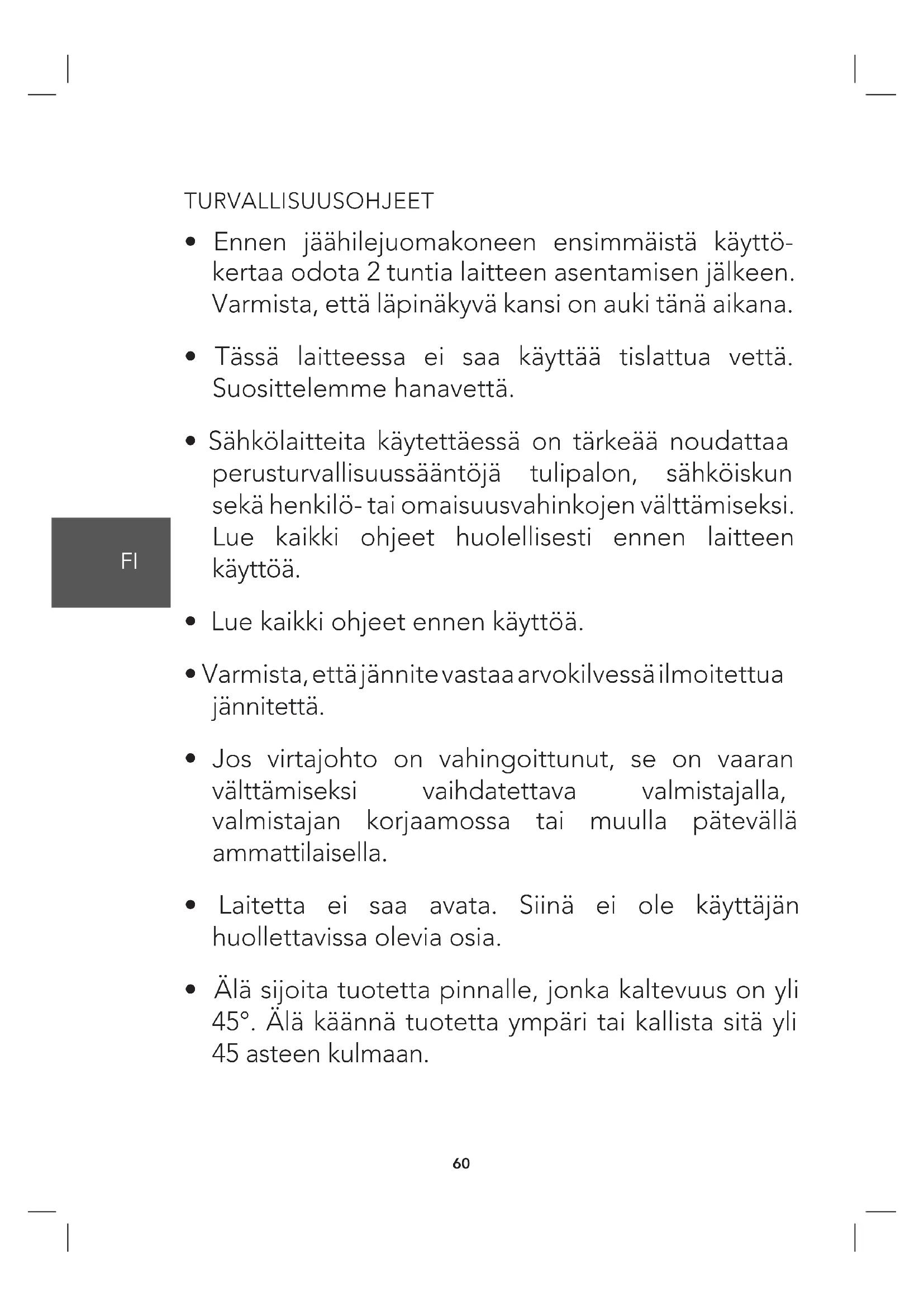 - Tässä laitteessa ei saa käyttää tislattua vettä. Suosittelemme hanavettä.