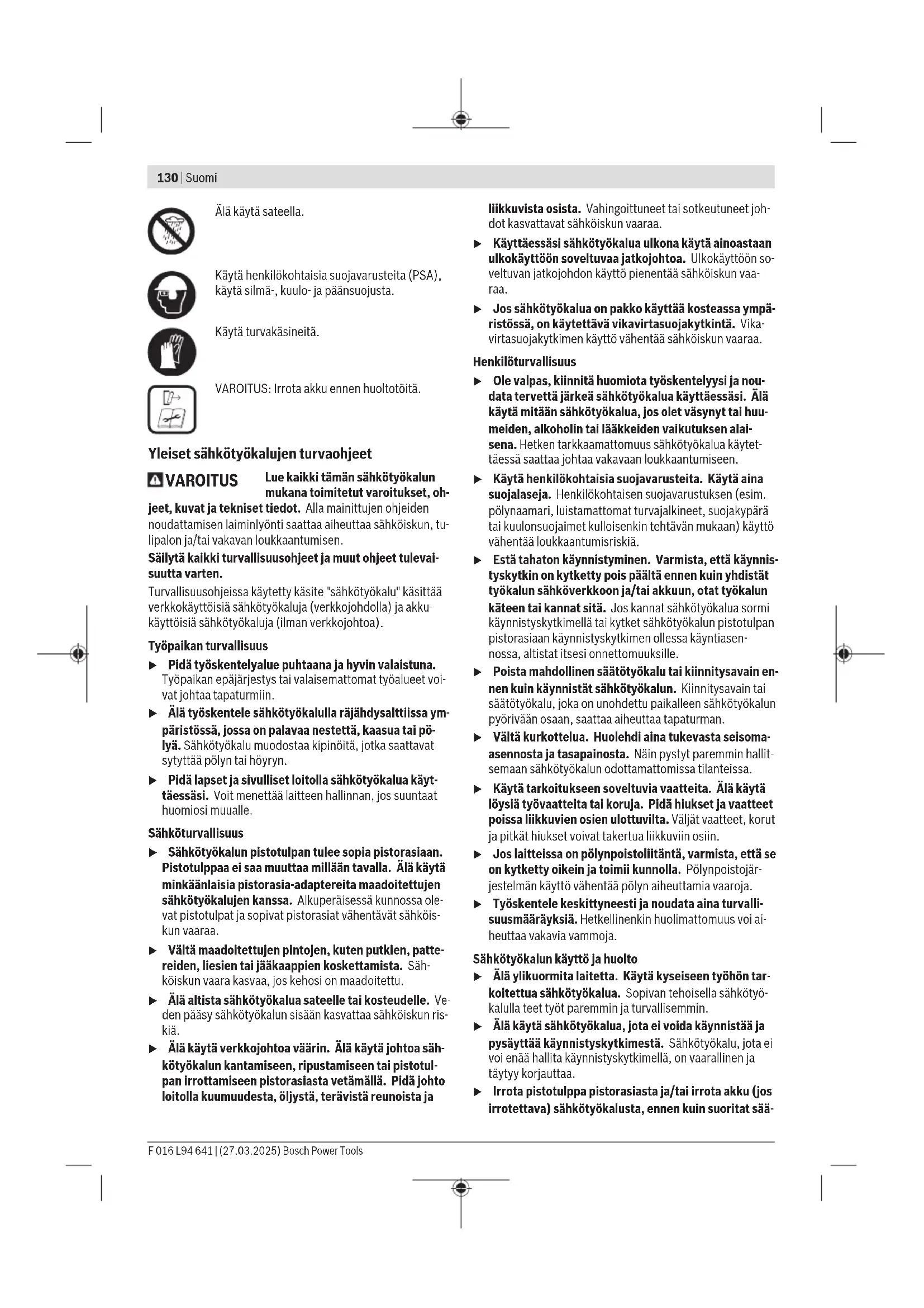 – Epätarkkuus K dB 2,4 Käytä kuulonsuojaimia! F 016 L94 641 | (27.03.2025) Bosch Power ToolsSuomi | 135