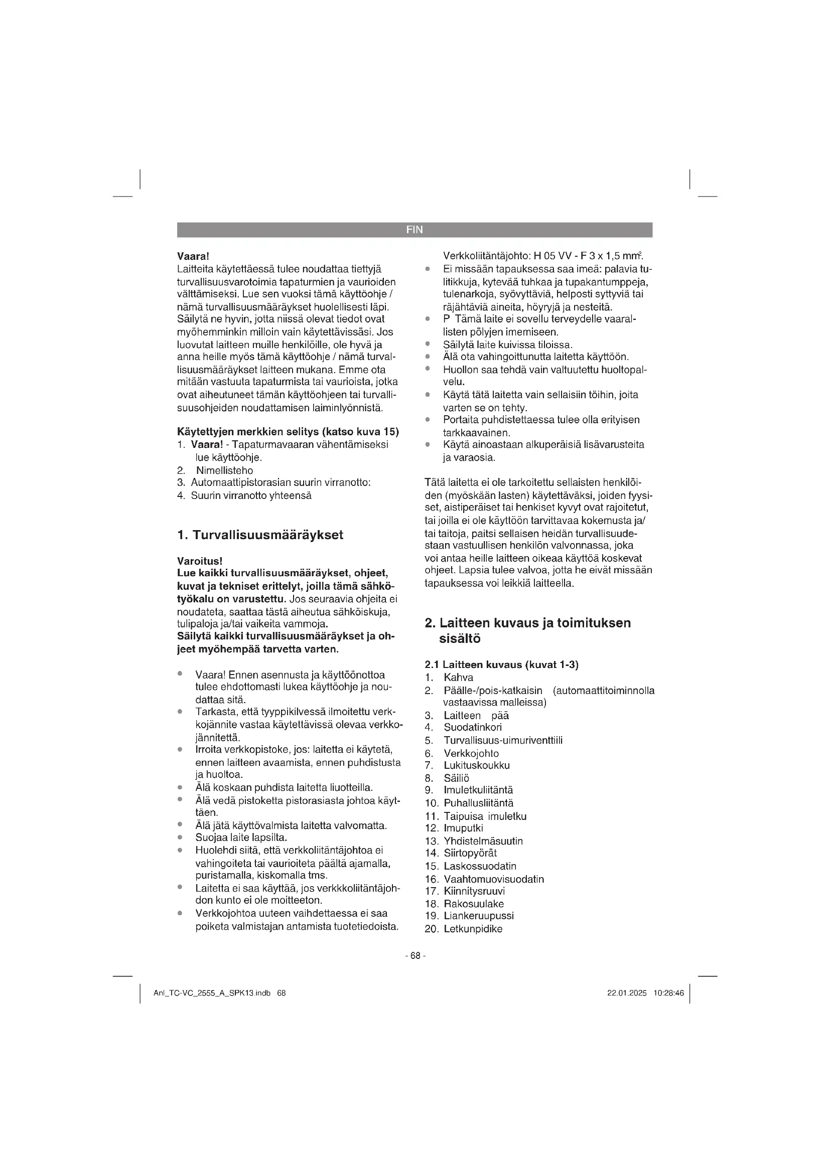 Viite! Älä koskaan käytä märkä-kuivaimuria ilman suo- datinta! Huolehdi aina siitä, että suodattimet ovat tukevas- ti paikallaan! Anl_TC-VC_2555_A_SPK13.indb 69Anl_TC-VC_2555_A_SPK13.indb 69 22.01.2025 10:28:4622.01.2025 10:28:46FIN