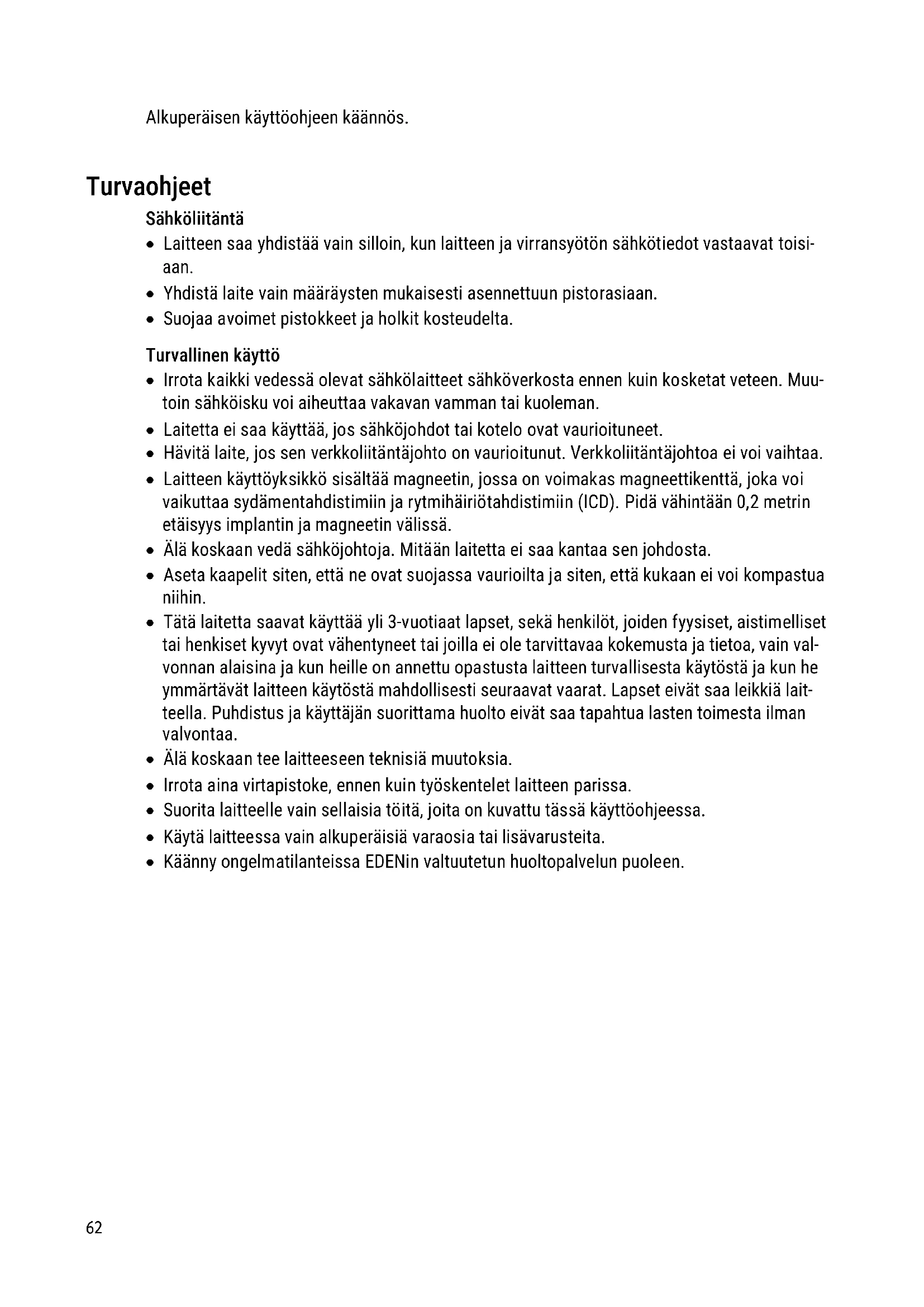 - Käänny ongelmatilanteissa EDENin valtuutetun huoltopalvelun puoleen.DE