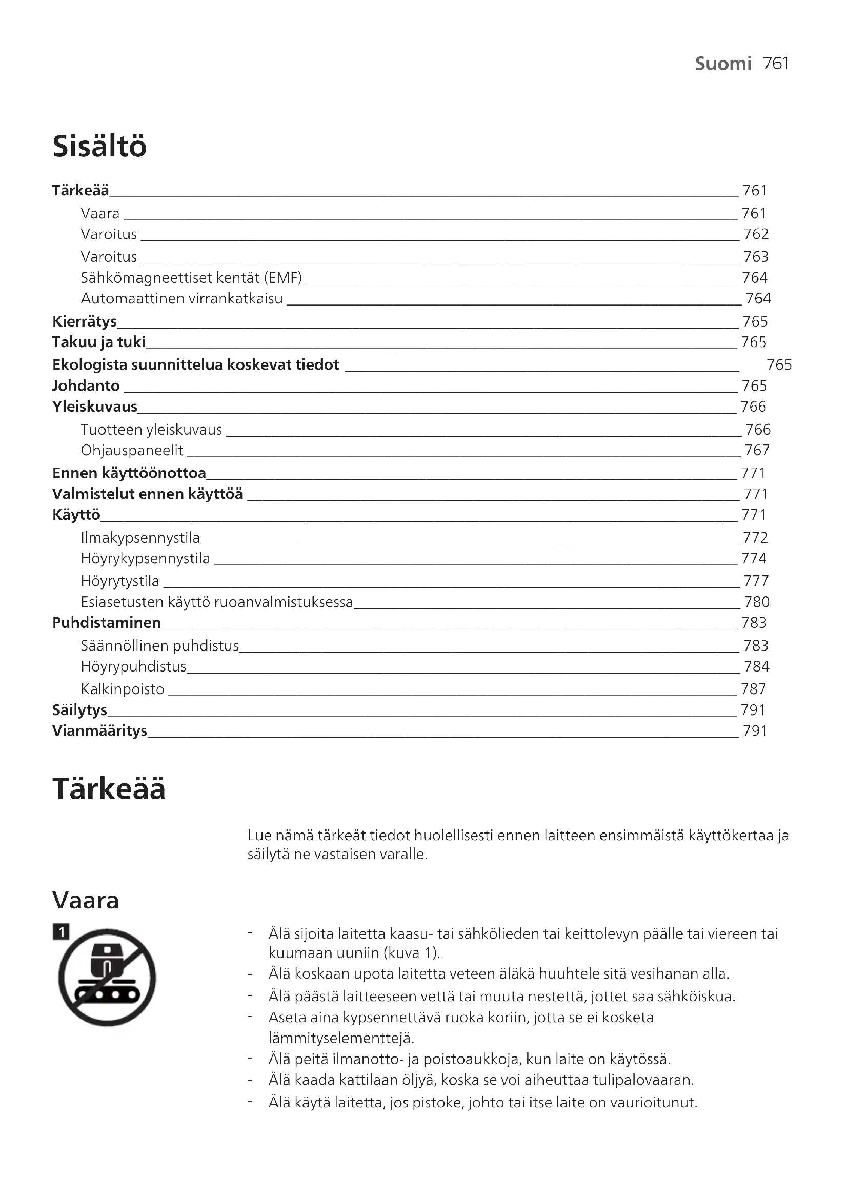 Älä käytä laitetta, jos pistoke, johto tai itse laite on vaurioitunut.762 Suomi