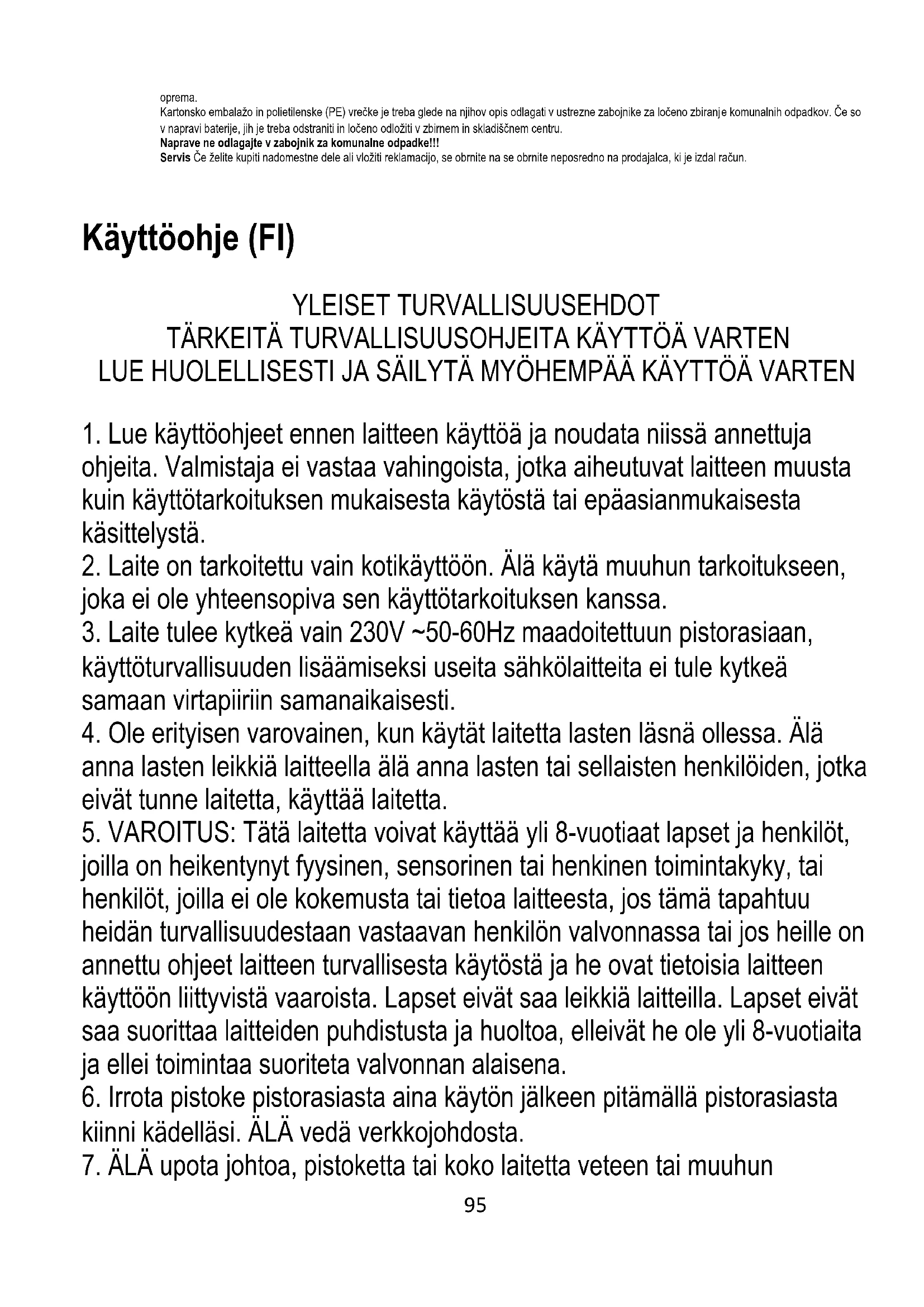 5. VAROITUS: Tätä laitetta voivat käyttää yli 8-vuotiaat lapset ja henkilöt,