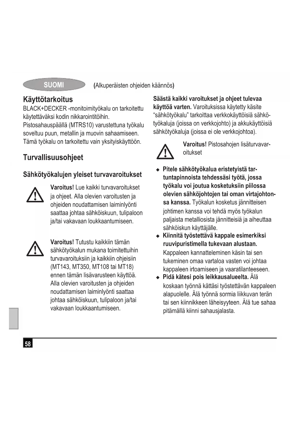 KÄYTTÖOHJE MTRS10 BLACK & DECKER