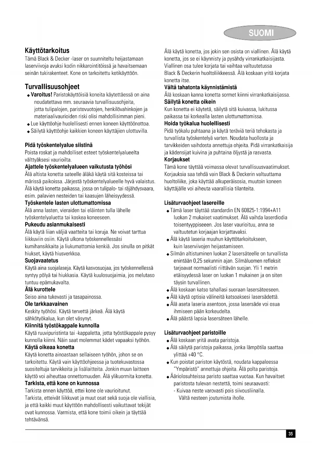 KÄYTTÖOHJE LZR1 BLACK & DECKER