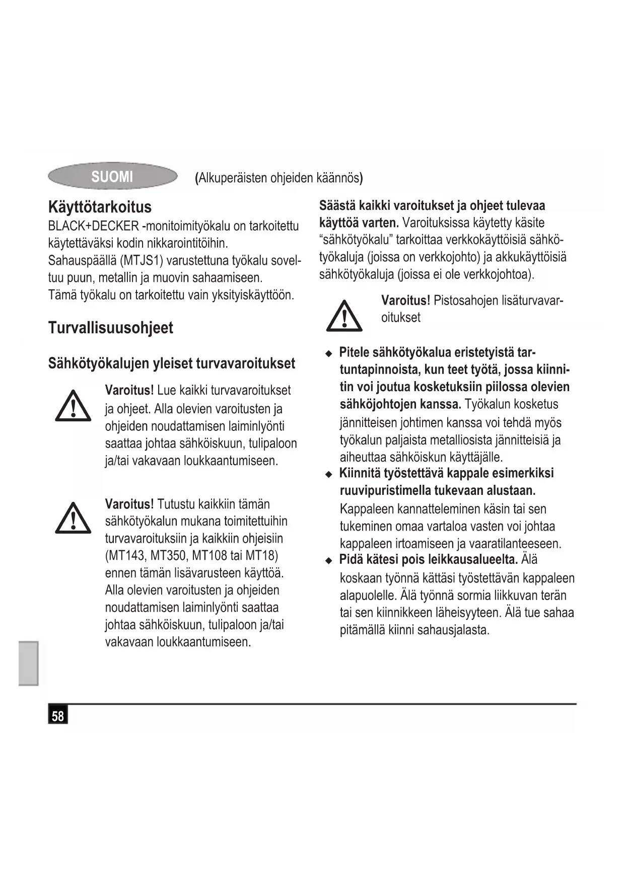 MTJS1 - Saha BLACK & DECKER - Ilmainen käyttöohje ja opas