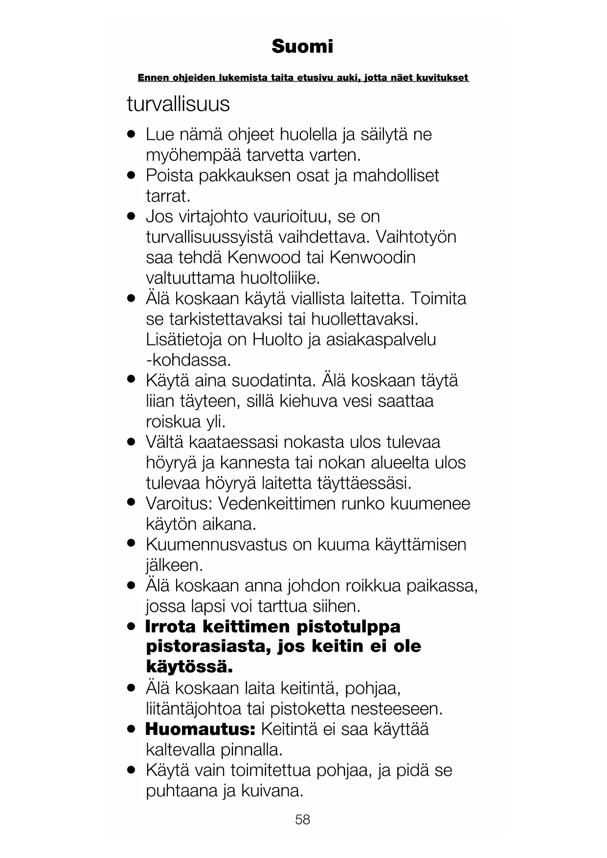 Tämä laite on tarkoitettu ainoastaan veden keittämiseen.