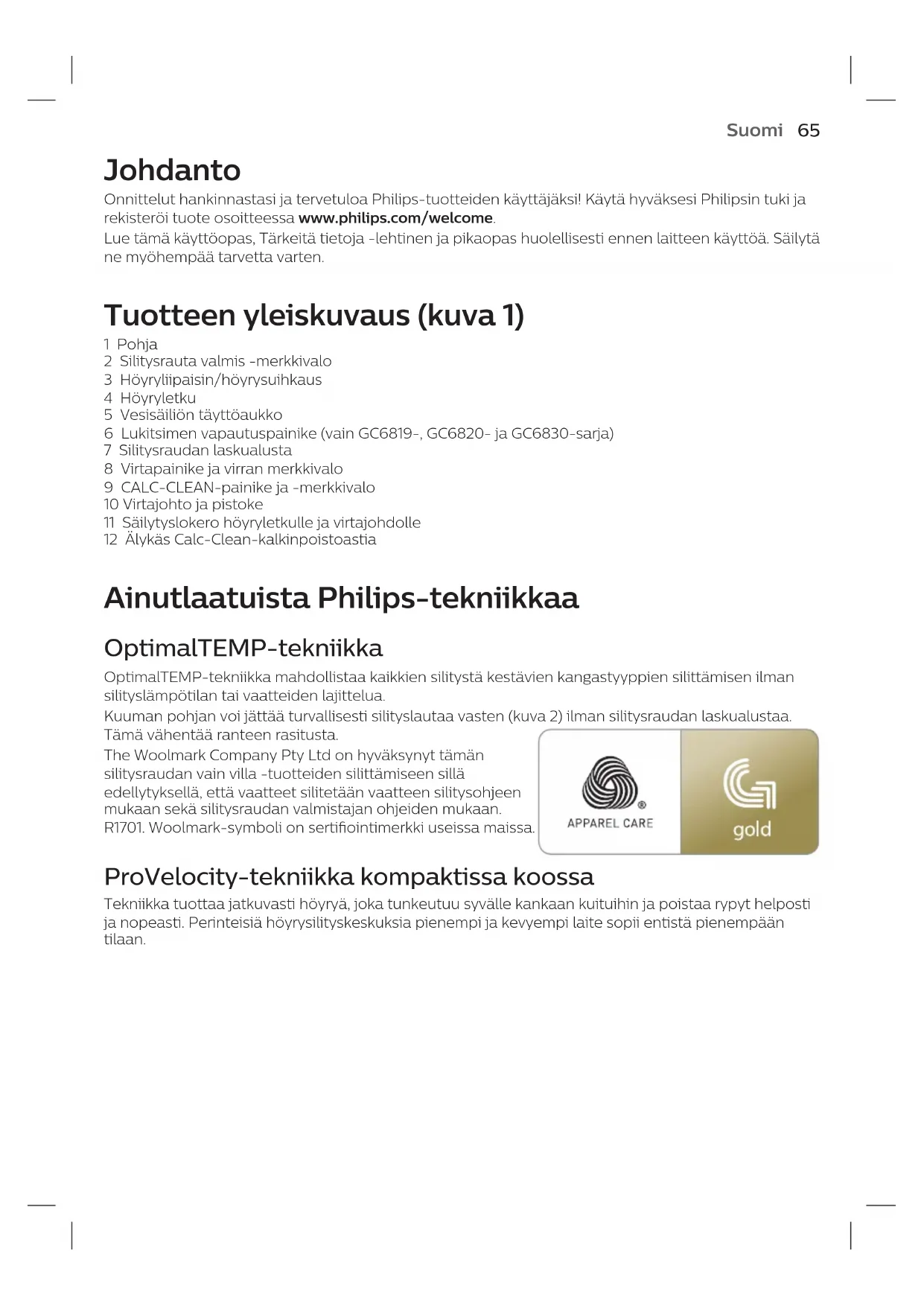 Löydä laitteen käyttöohje ilmaiseksi Perfectcare Compact Essential GC6815 PHILIPS PDF-muodossa.