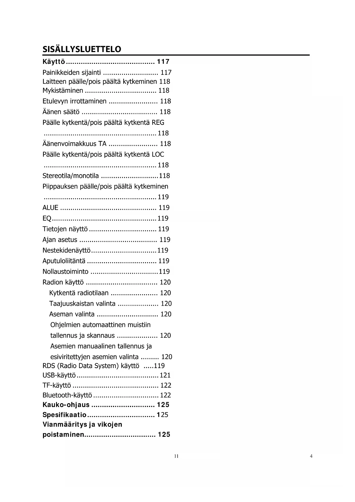 - RDS (Radio Data System) käyttö p. 119