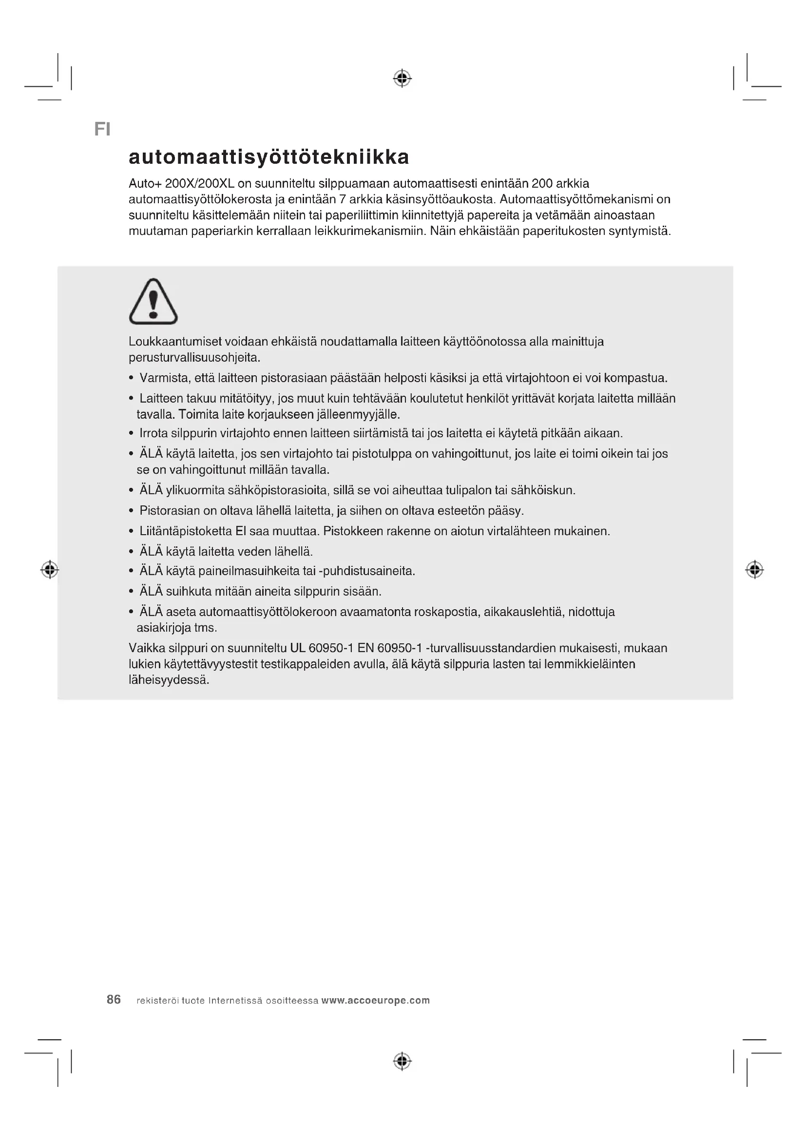 - silppuri on käyttämättömänä 30 minuuttia (mutta lokerossa on vielä asiakirjoja).90 rekisteröi tuote Internetissä osoitteessa www.accoeurope.com