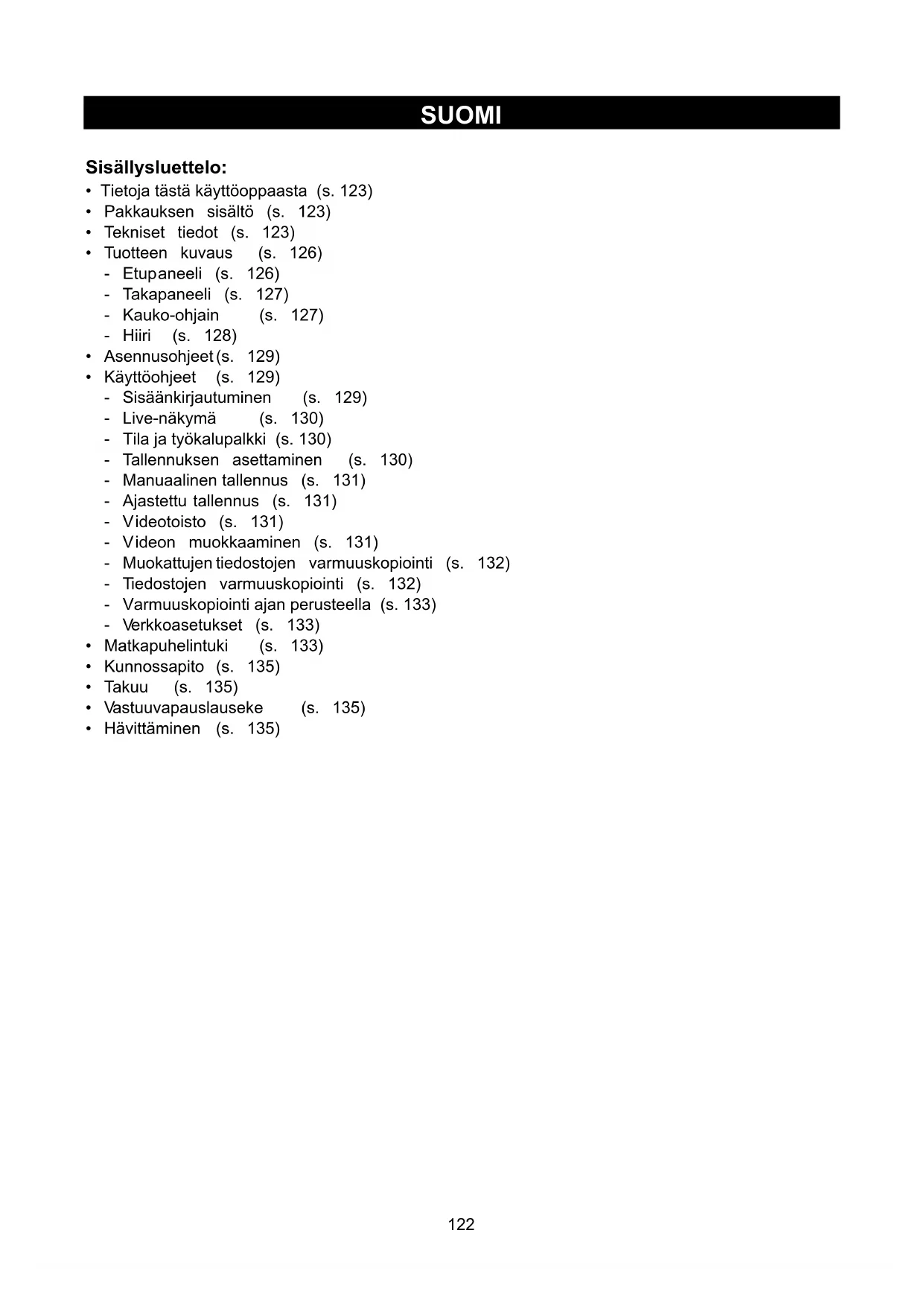 - Pakkauksen sisältö (s. 123)