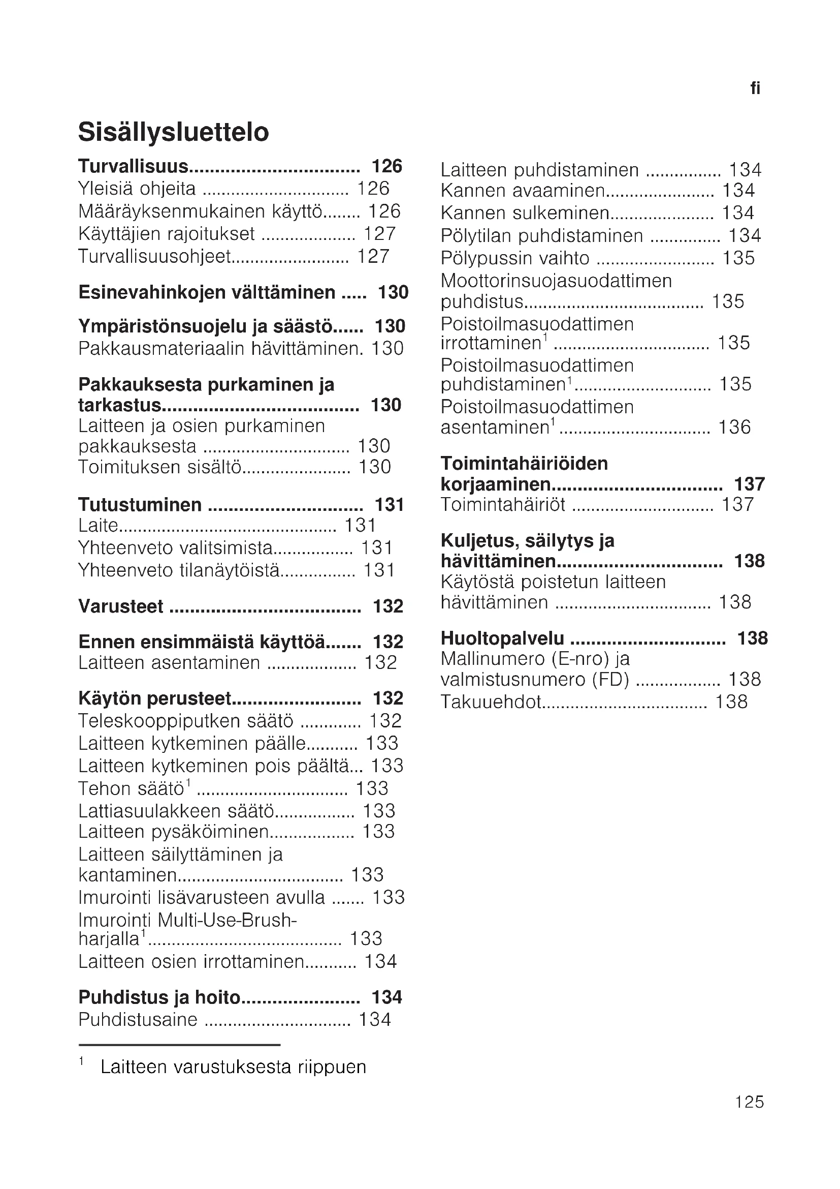 - Huoltopalvelu p. 138