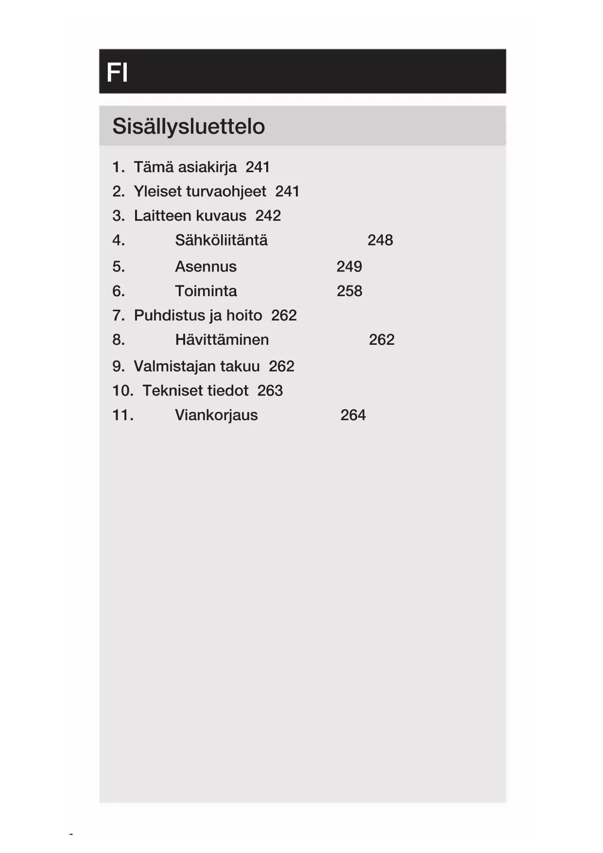 FI– 241 – Sisällysluettelo