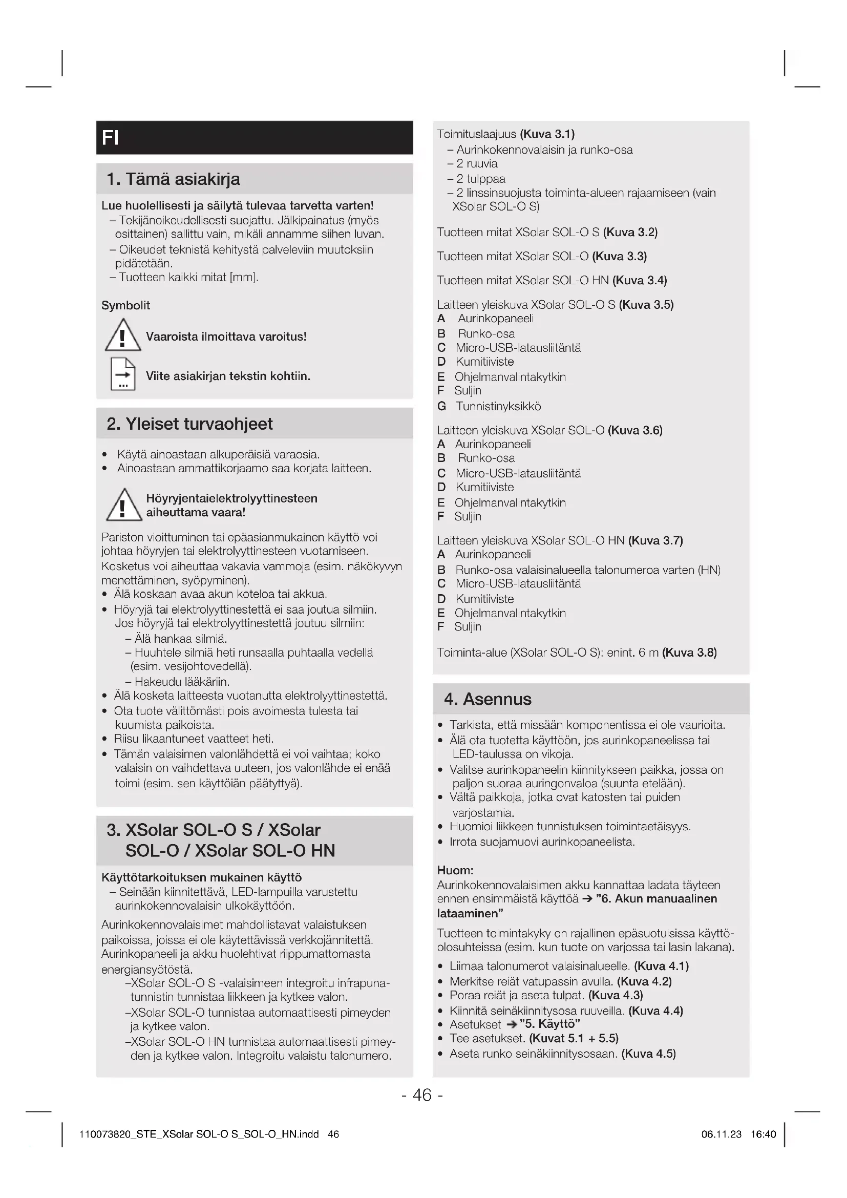 110073820_STE_XSolar SOL-O S_SOL-O_HN.indd 46110073820_STE_XSolar SOL-O S_SOL-O_HN.indd 46 06.11.23 16:4006.11.23 16:40- 47 - 5 Käyttö Ennen ensimmäistä käyttöä