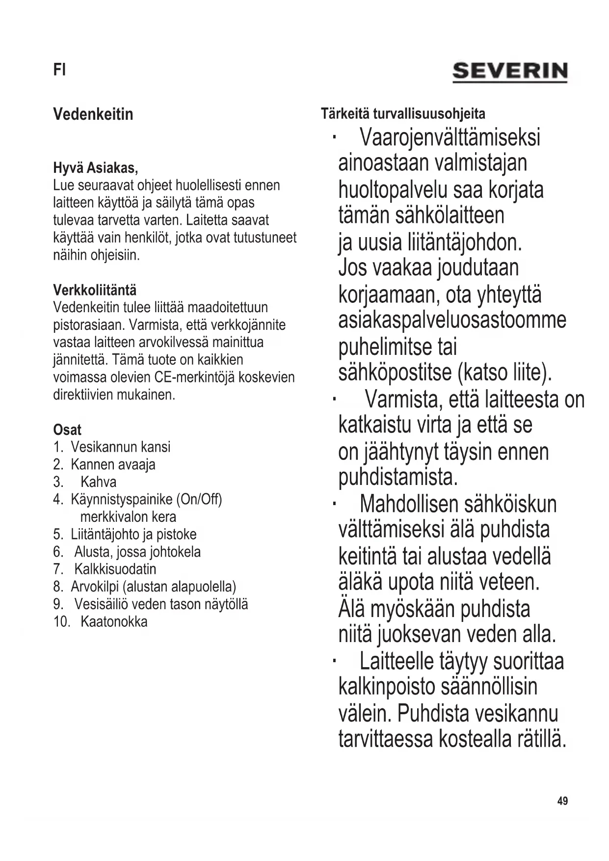KÄYTTÖOHJE WK 9265 SEVERIN