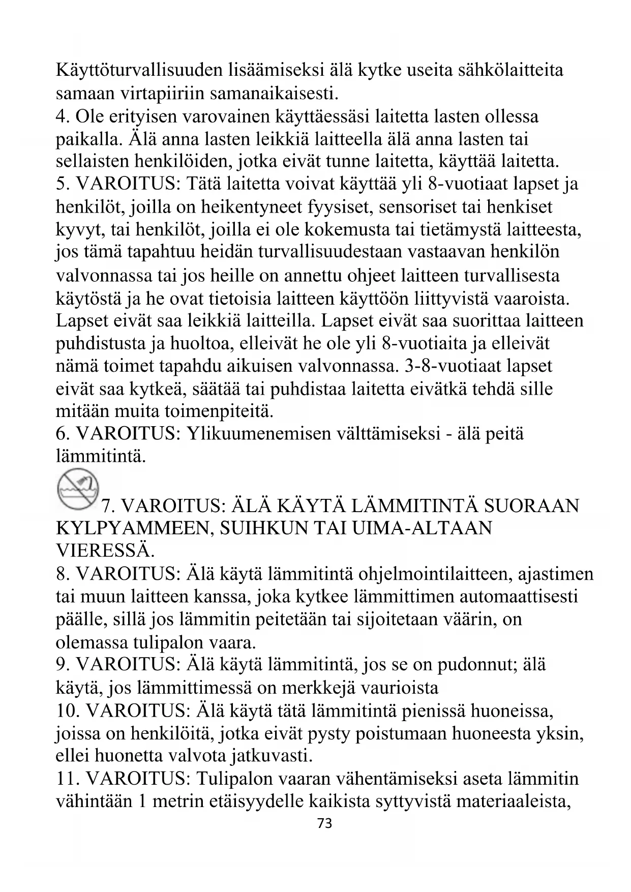 10. VAROITUS: Älä käytä tätä lämmitintä pienissä huoneissa,