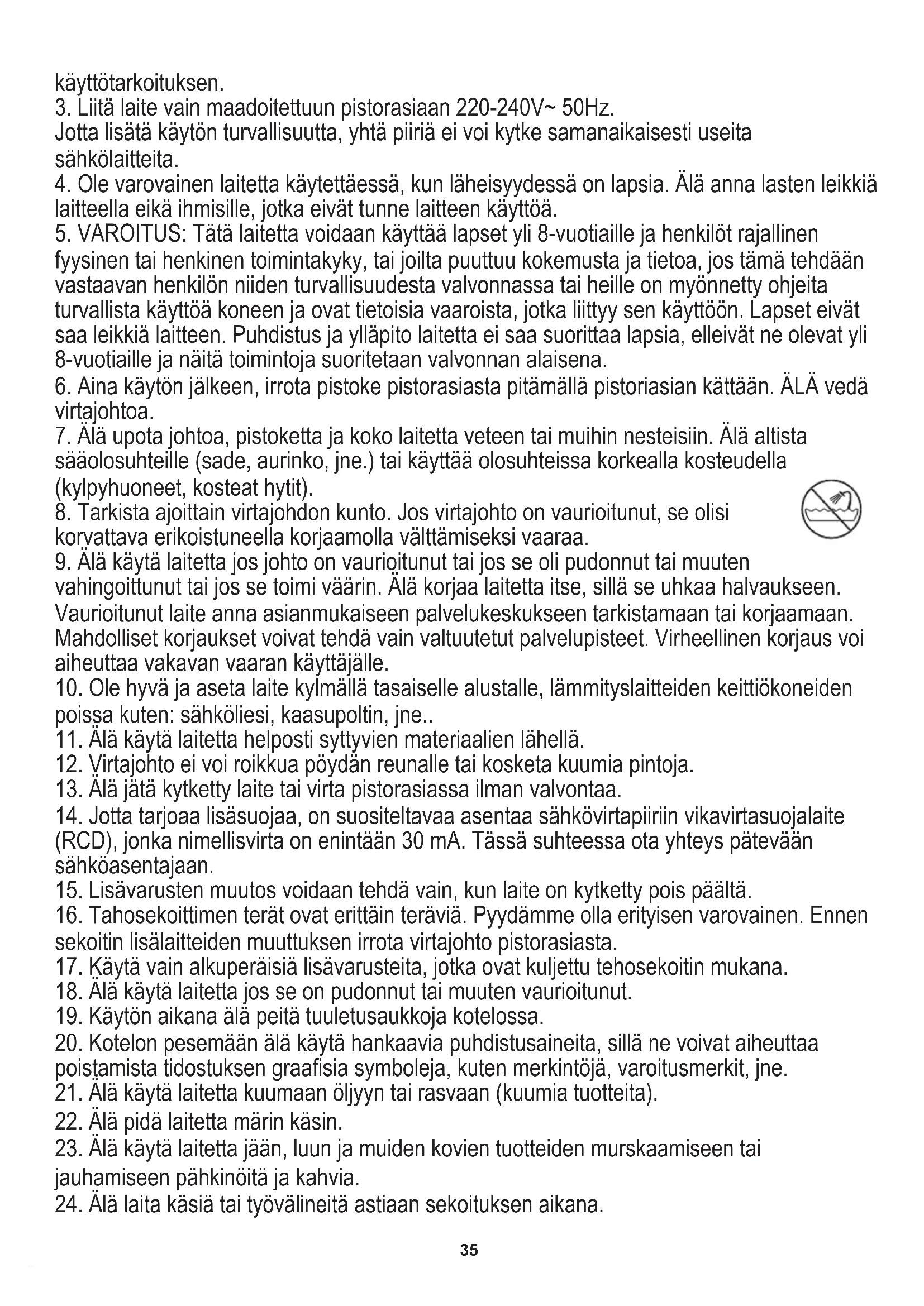 23. Älä käytä laitetta jään, luun ja muiden kovien tuotteiden murskaamiseen tai