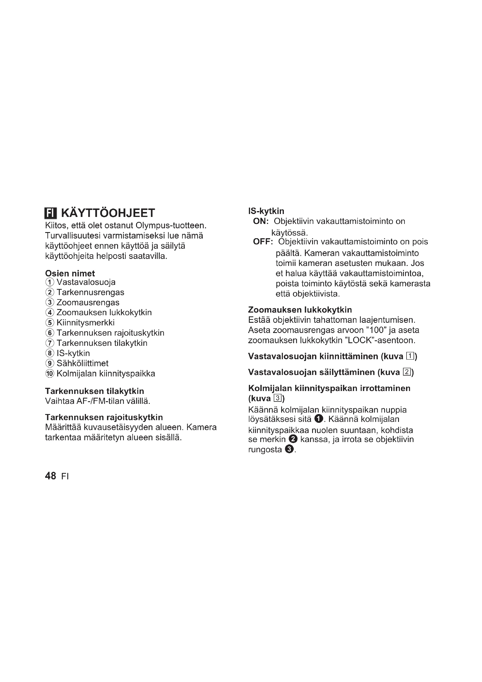 KÄYTTÖOHJE M.Zuiko Digital ED 100400mm f56.3 IS OLYMPUS