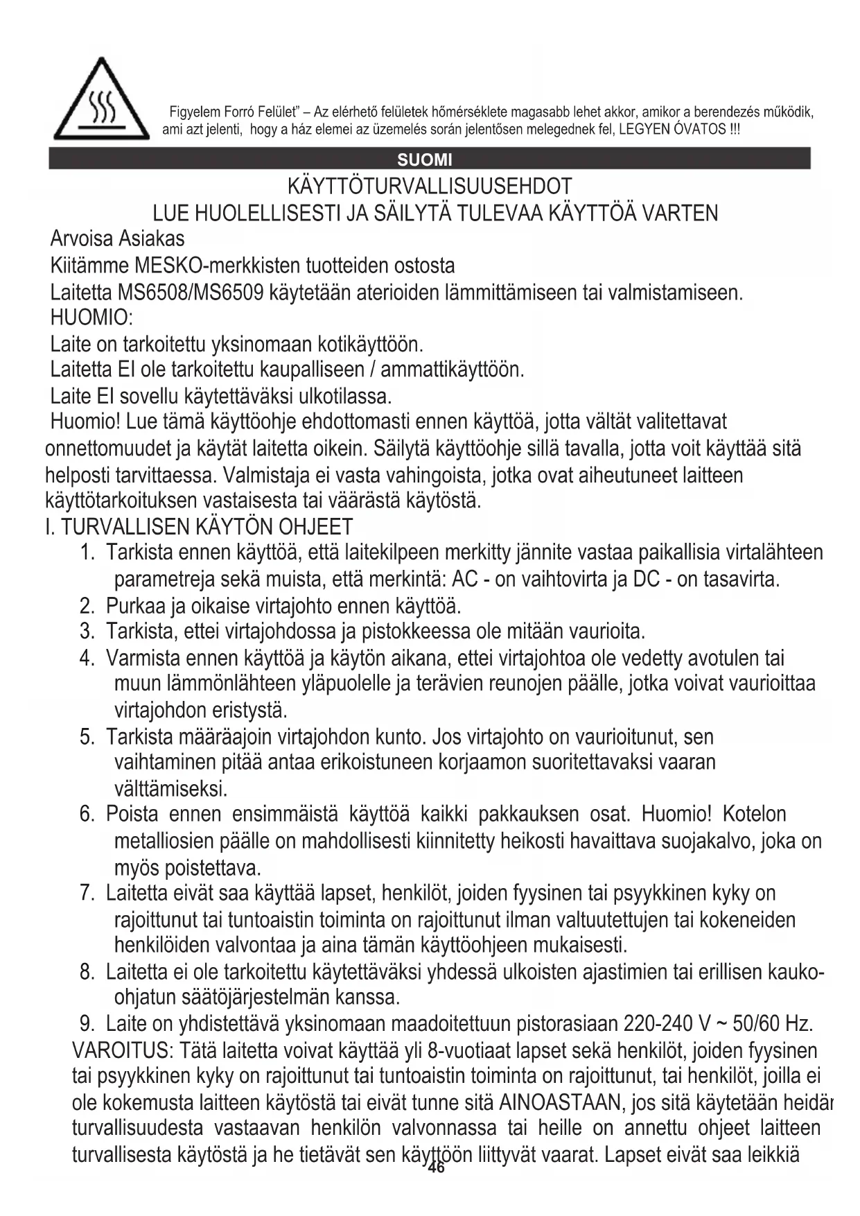 KÄYTTÖOHJE MS 6508 Mesko