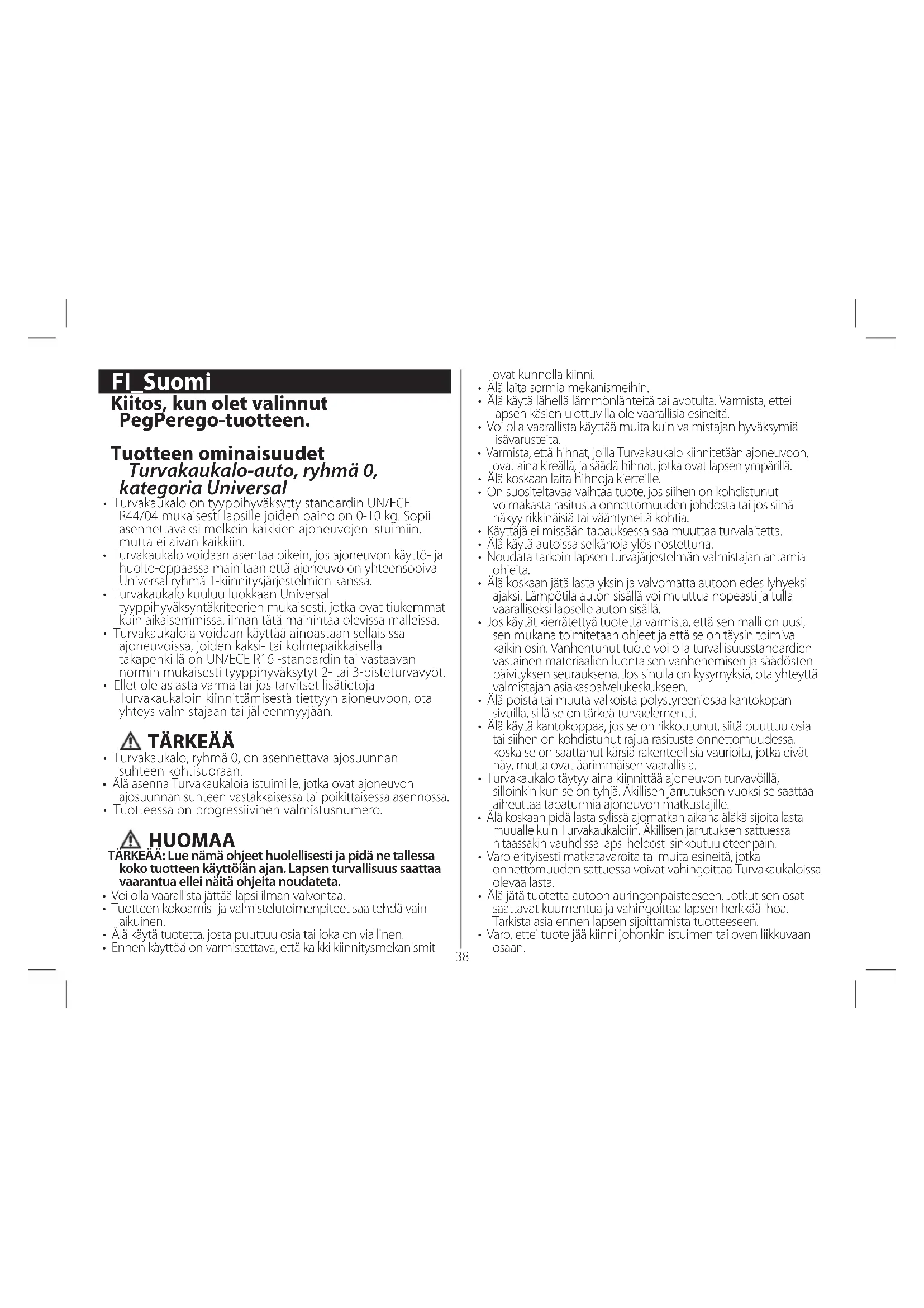 - Tuotteessa on progressiivinen valmistusnumero. HUOMAA TÄRKEÄÄ: Lue nämä ohjeet huolellisesti ja pidä ne tallessa koko tuotteen käyttöiän ajan. Lapsen turvallisuus saattaa vaarantua ellei näitä ohjeita noudateta.