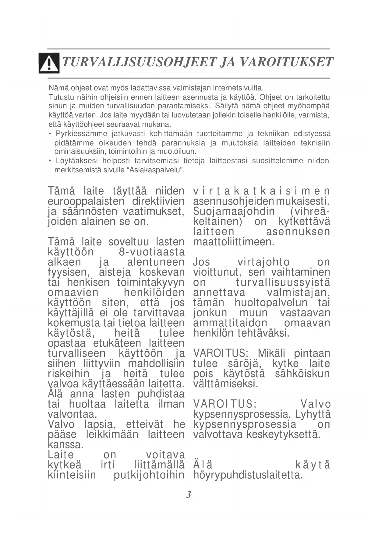 TURVALLISUUSOHJEET JA VAROITUKSETTURVALLISUUSOHJEET JA VAROITUKSET