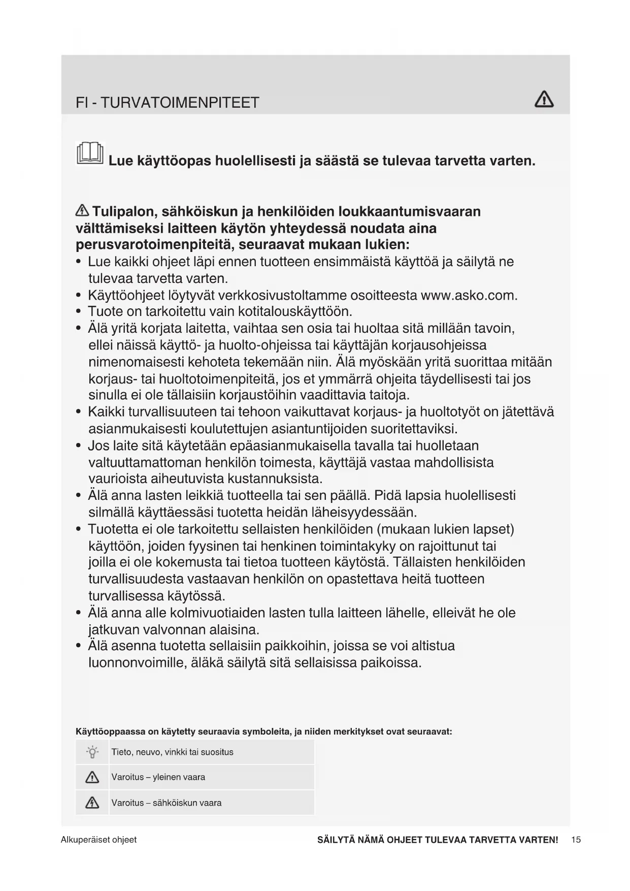 - Käyttöohjeet löytyvät verkkosivustoltamme osoitteesta www.asko.com.