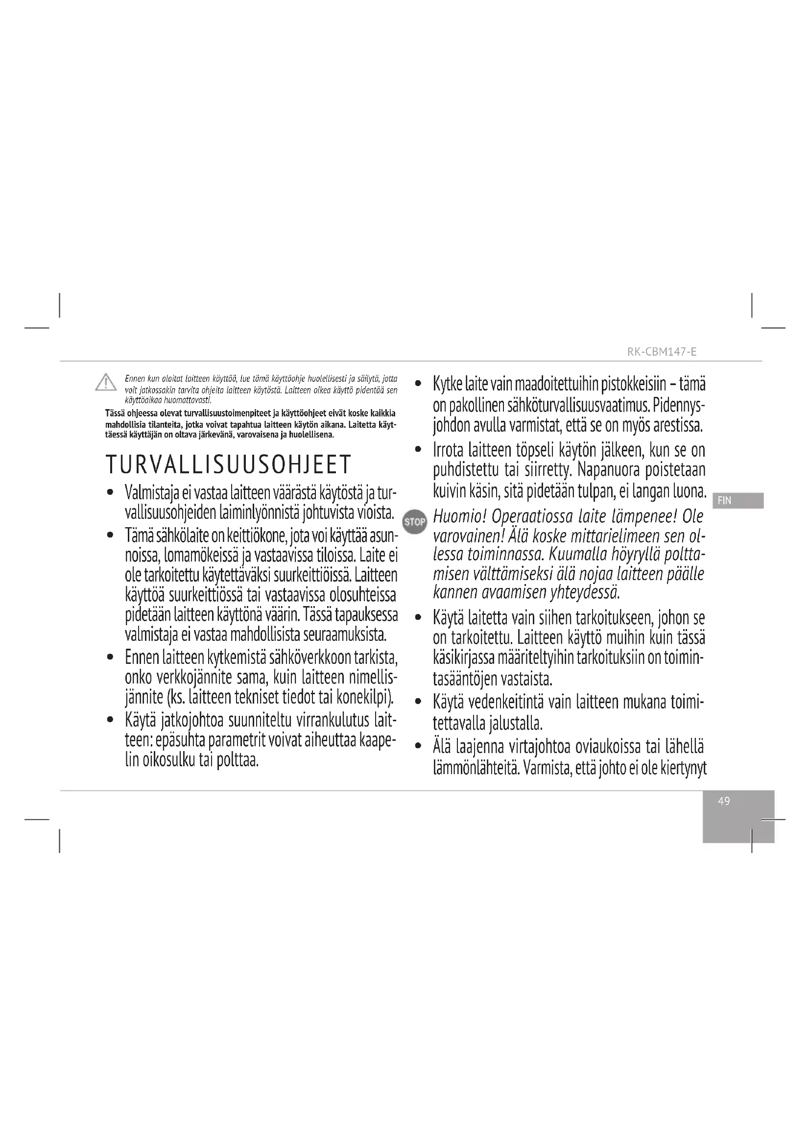 KÄYTTÖOHJE RKCBM147E Redmond