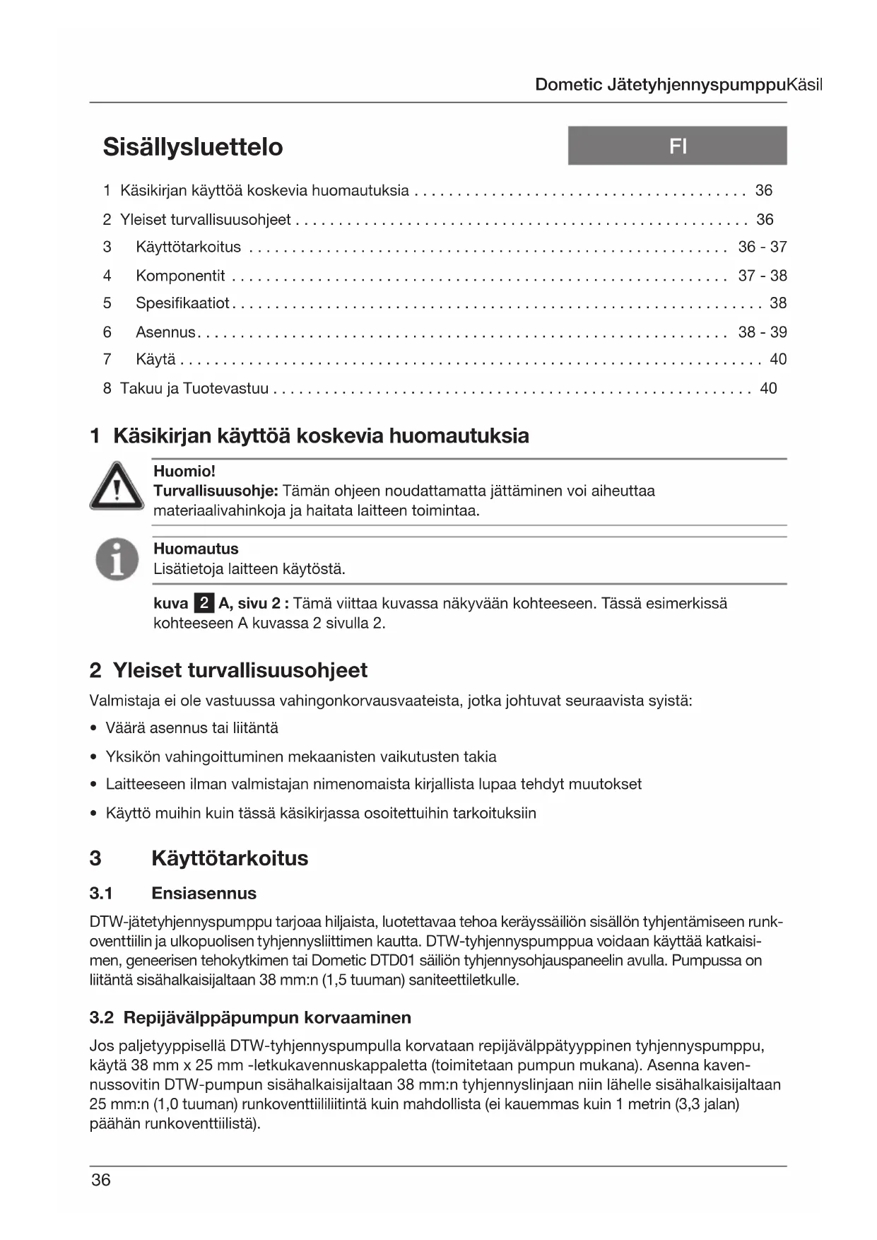 Jätetyhjennyspumppu Ohjekirja ........................ 36