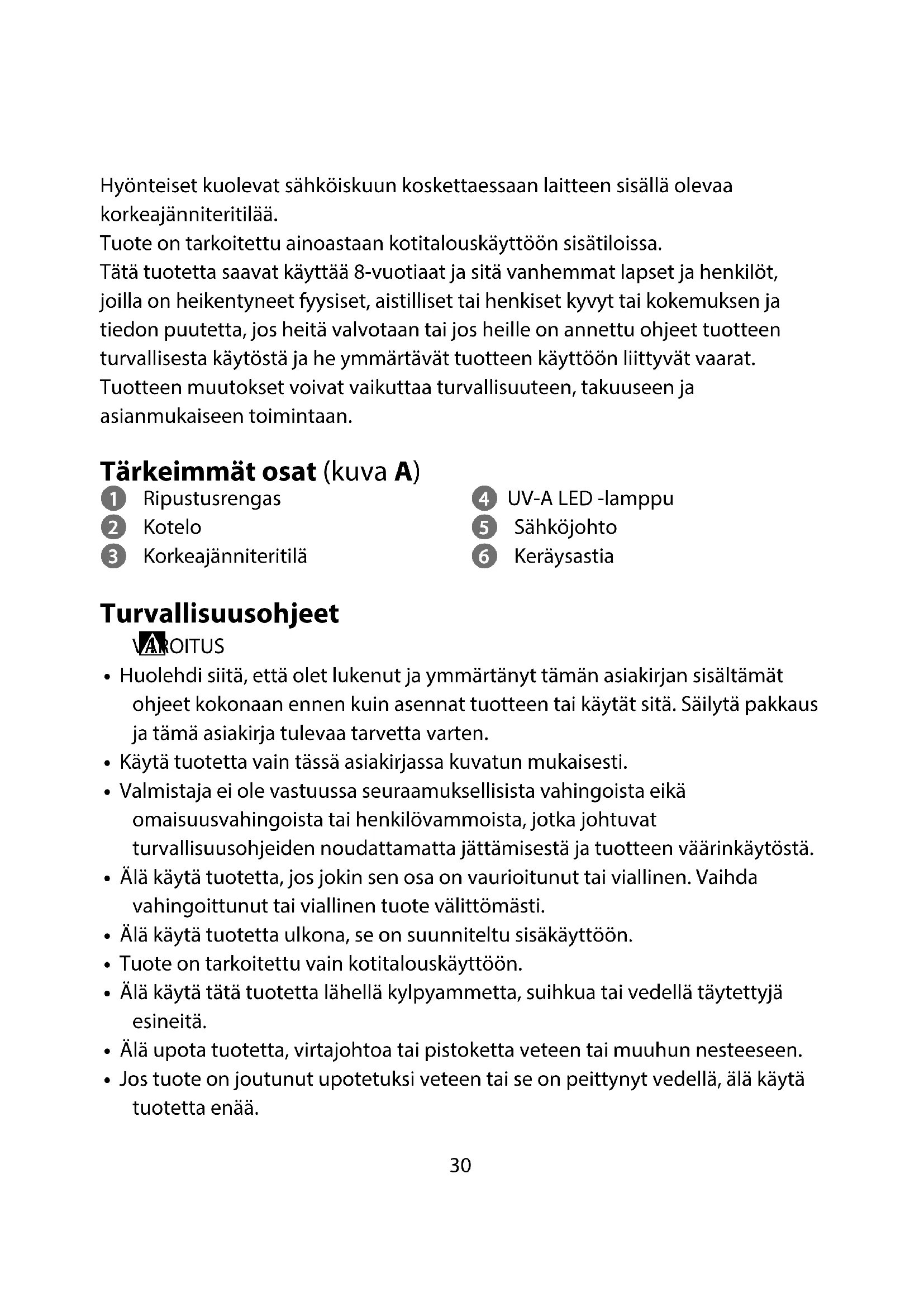 - Tuote on tarkoitettu vain kotitalouskäyttöön.