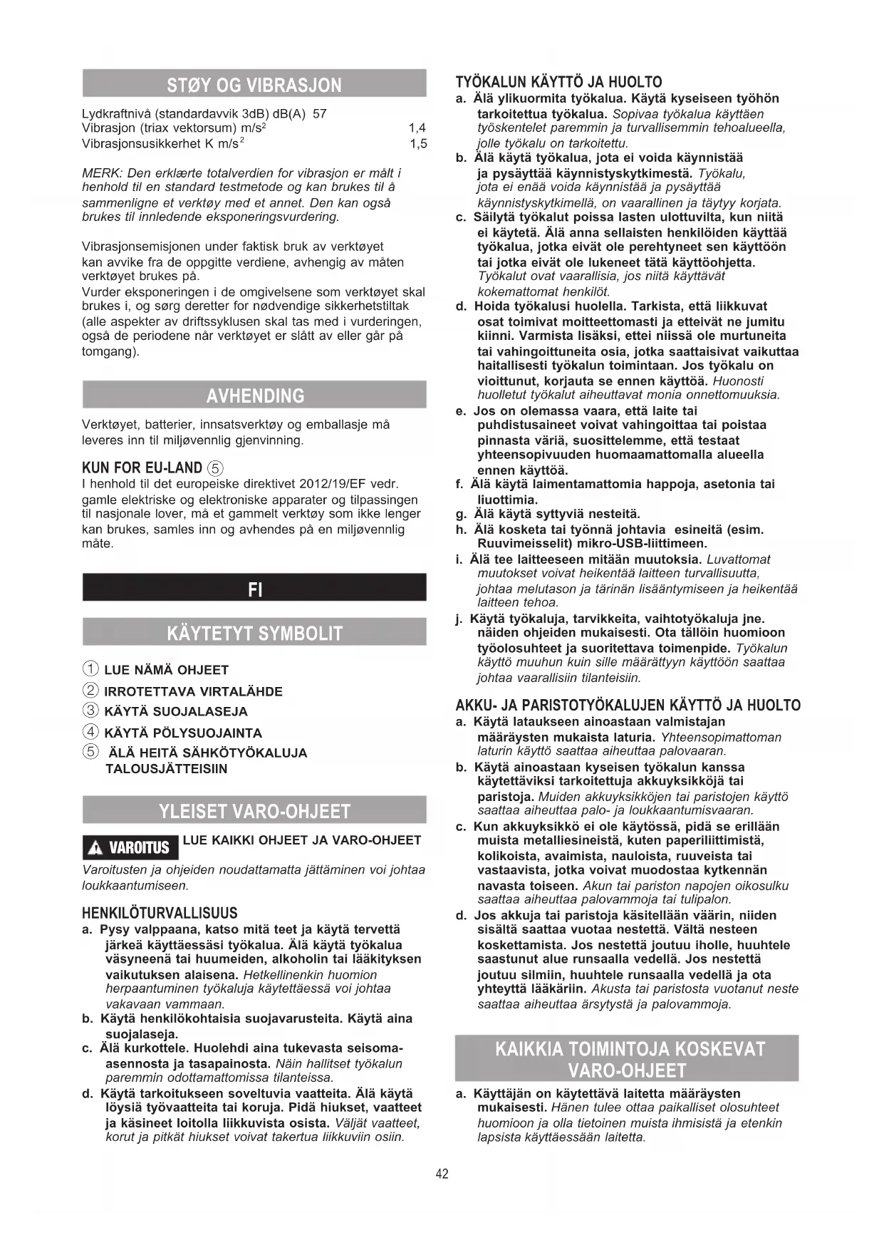 Sähkötyökalut, akut, paristot, lisälaitteet ja pakkaukset tulisi lajitella, kierrättää ja hävittää ympäristöystävällisesti. VAIN EU:N JÄSENMAITA KOSKEVAT TIEDOT