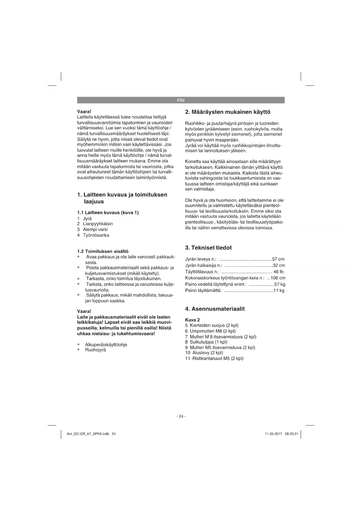 - Jyrän leveys n.: p. 57