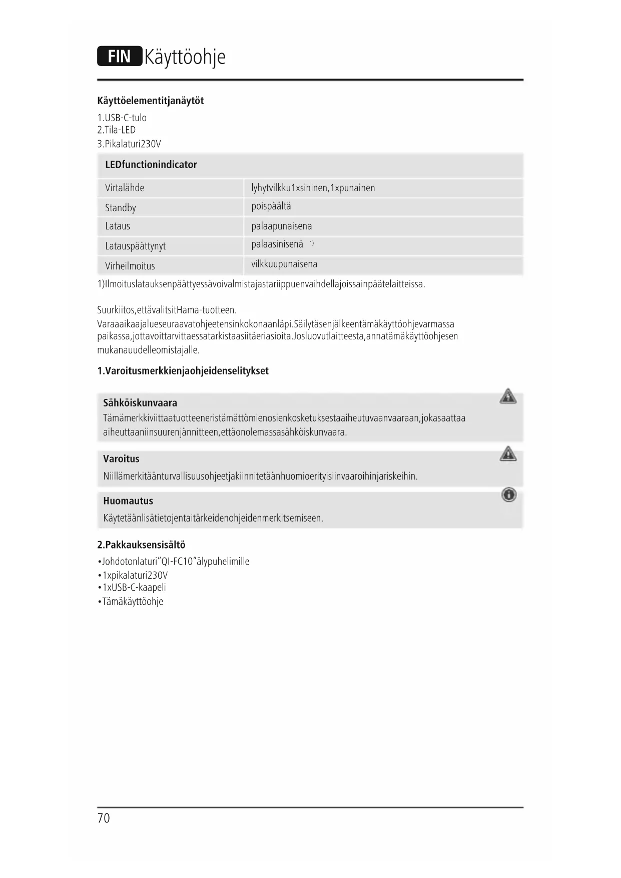 Löydä laitteen käyttöohje ilmaiseksi QIFC10 HAMA PDF-muodossa.