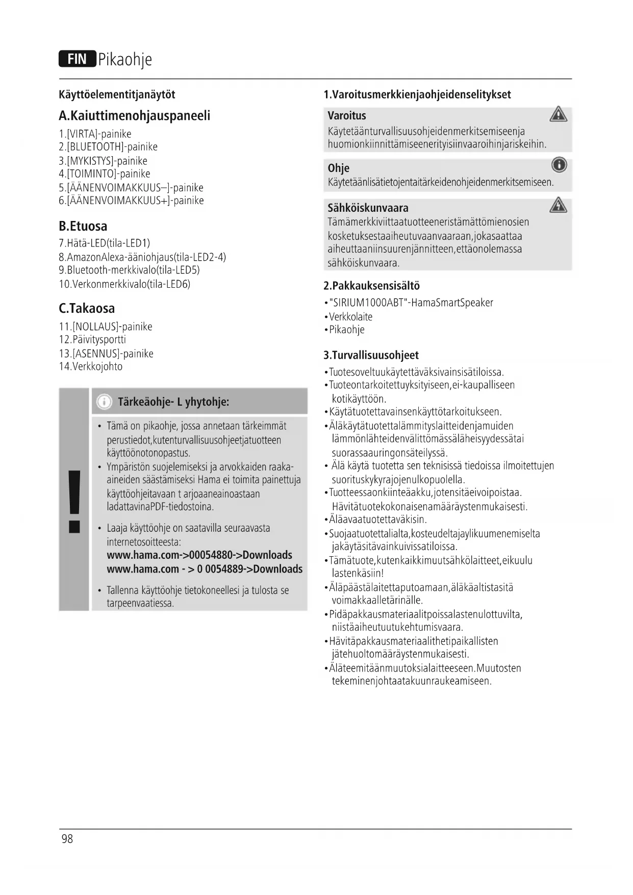 - Pikaohje 3.Turvallisuusohjeet