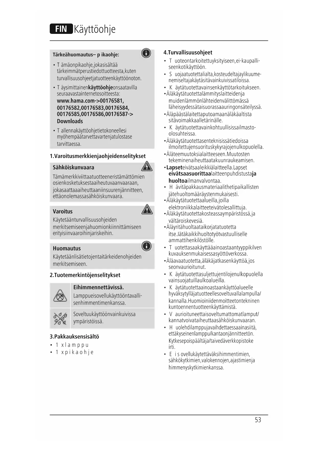 - Täysimittainen käyttöohje on saatavilla seuraavasta internetosoitteesta: www.hama.com -> 00176581, 00176582, 00176583, 00176584, 00176585, 00176586, 00176587 -> Downloads
