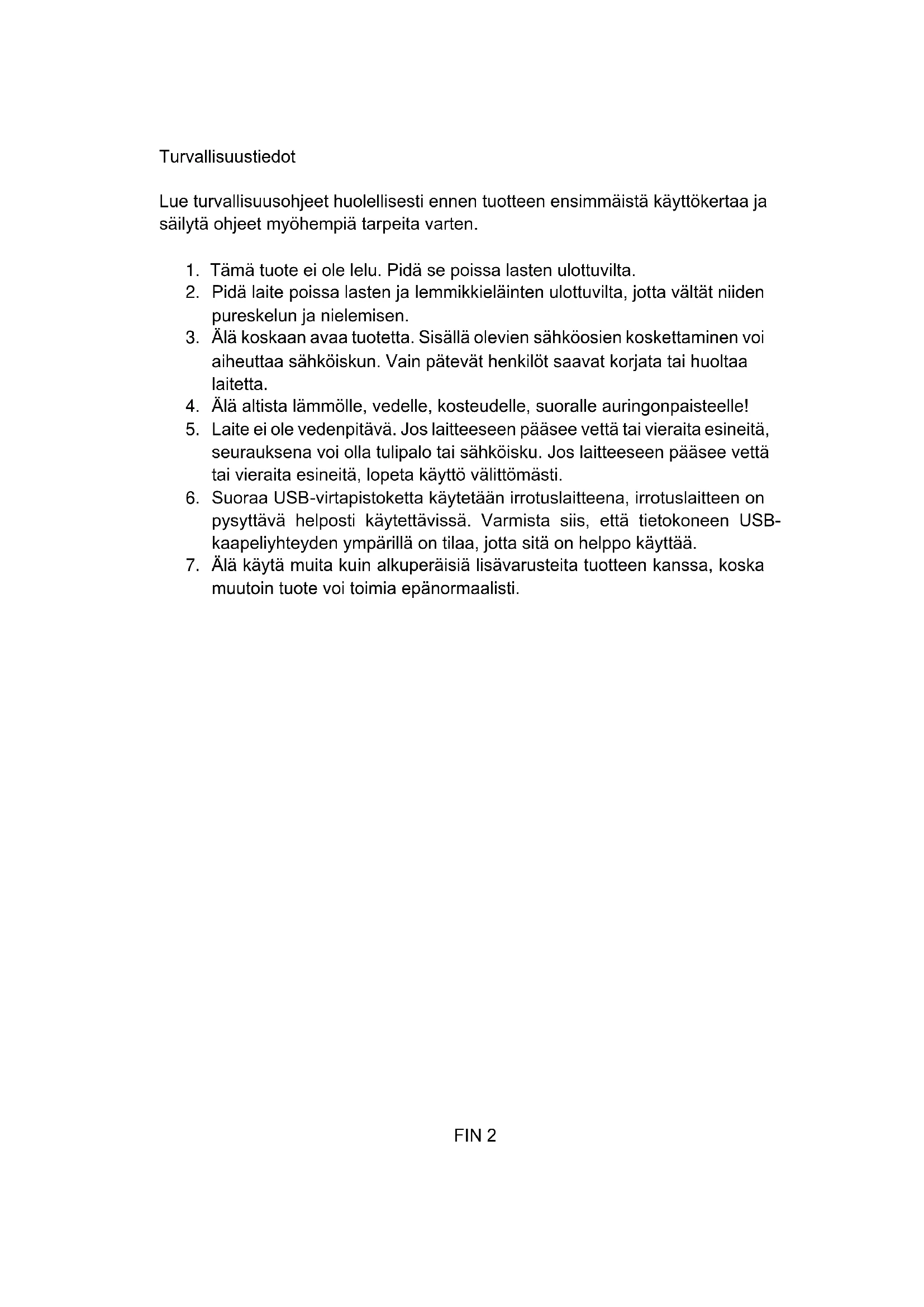 1. Tämä tuote ei ole lelu. Pidä se poissa lasten ulottuvilta.