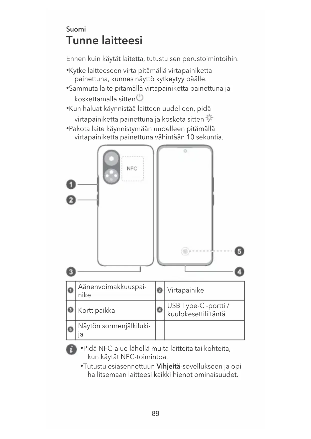 - Tutustu esiasennettuun Vihjeitä-sovellukseen ja opi hallitsemaan laitteesi kaikki hienot ominaisuudet. 89Aloittaminen