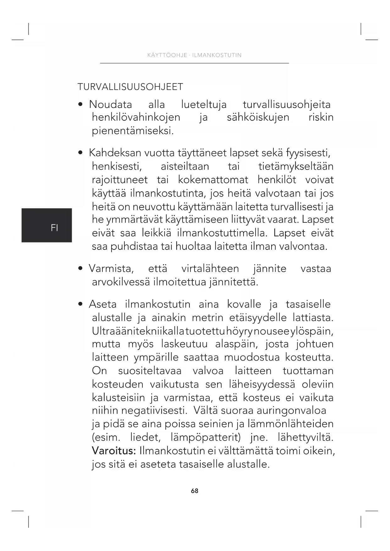 - Älä käytä ilmankostutinta, jos huoneilma on jo riittävän kosteaa.71