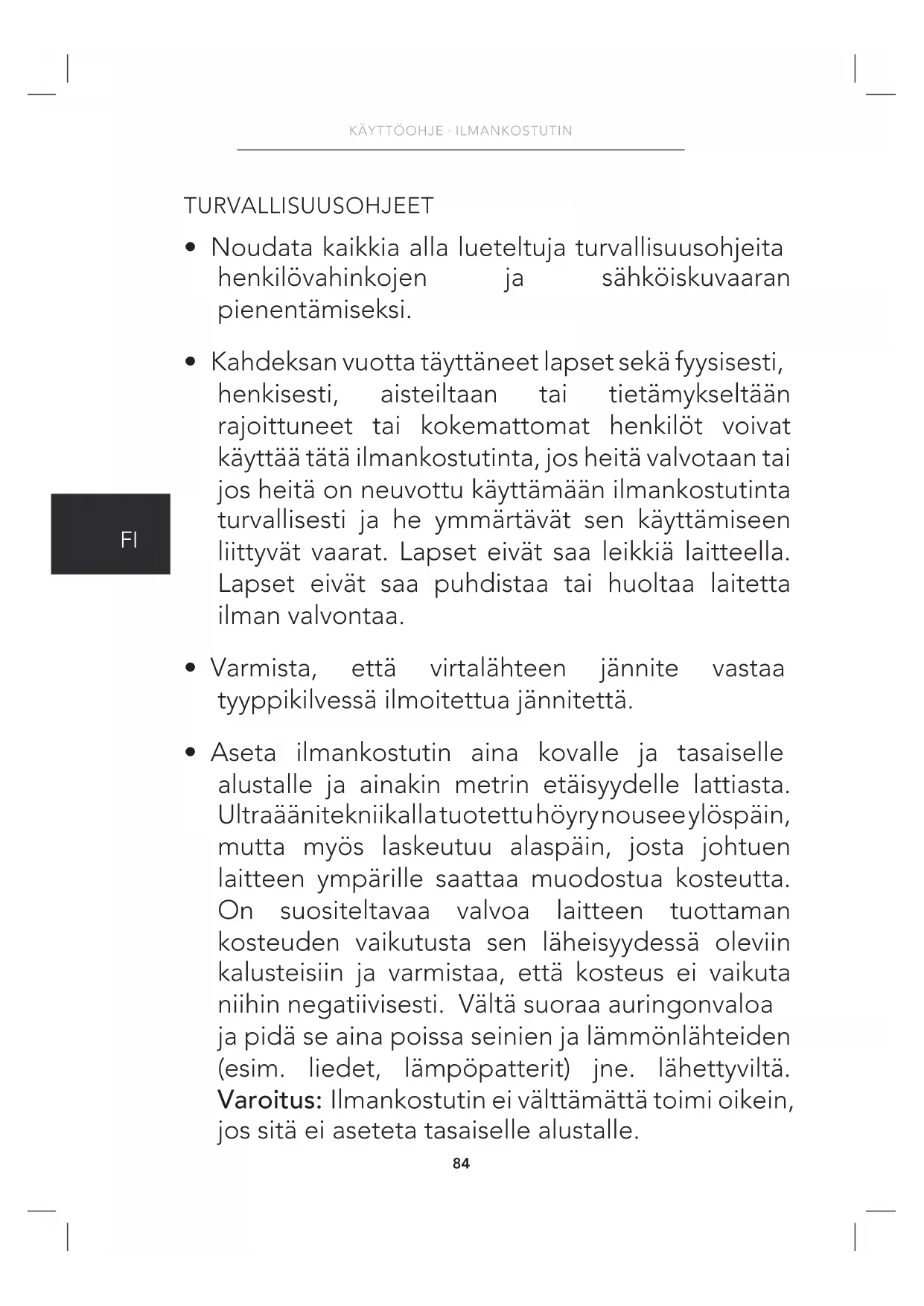 - Älä käytä ilmankostutinta, jos huoneilma on jo riittävän kosteaa.87