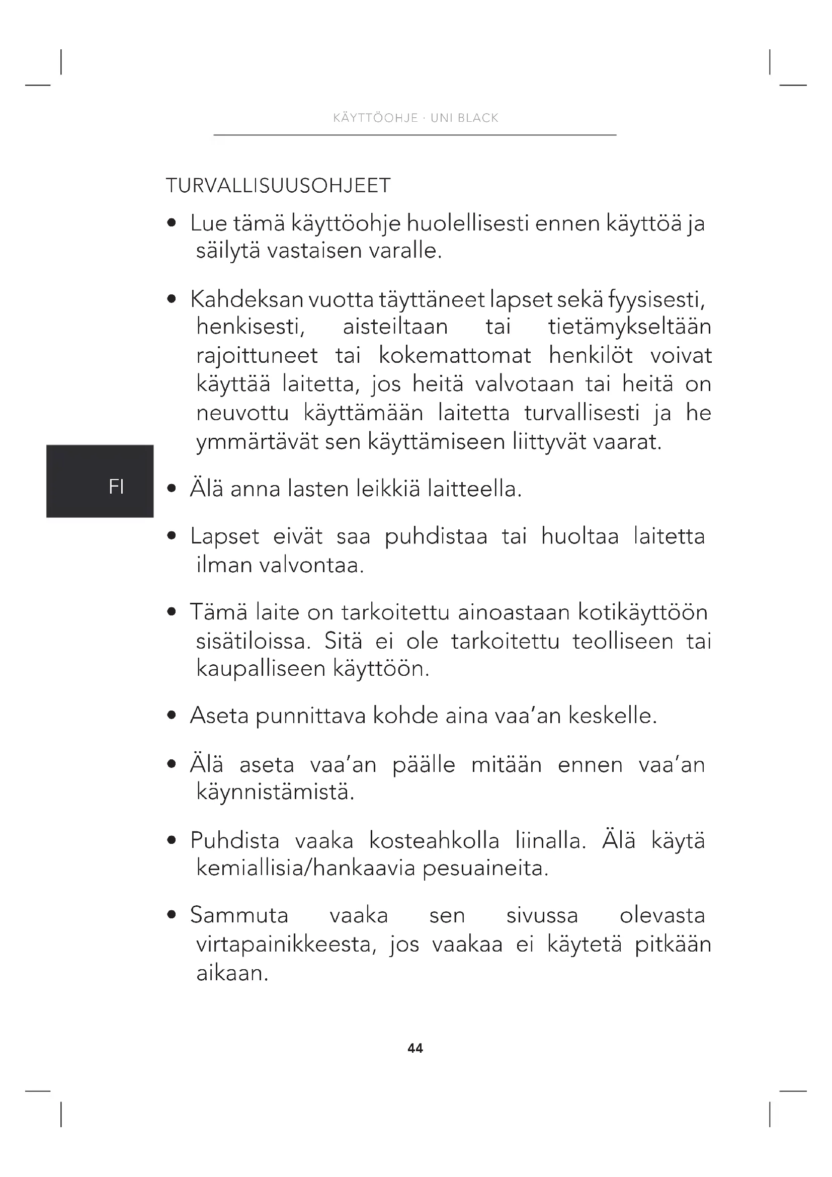 - Lapset eivät saa puhdistaa tai huoltaa laitetta ilman valvontaa.