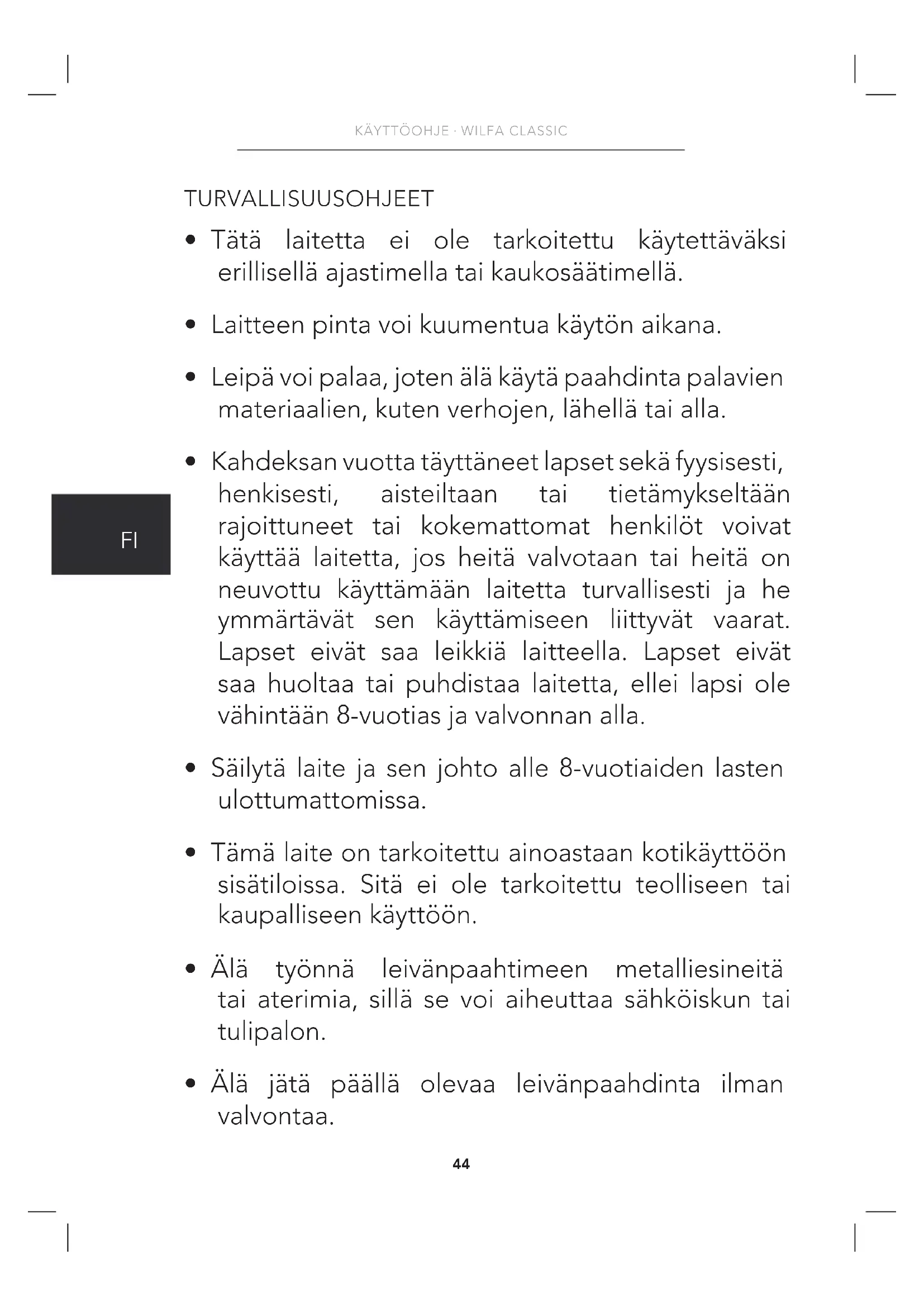 - Älä jätä päällä olevaa leivänpaahdinta ilman valvontaa.45