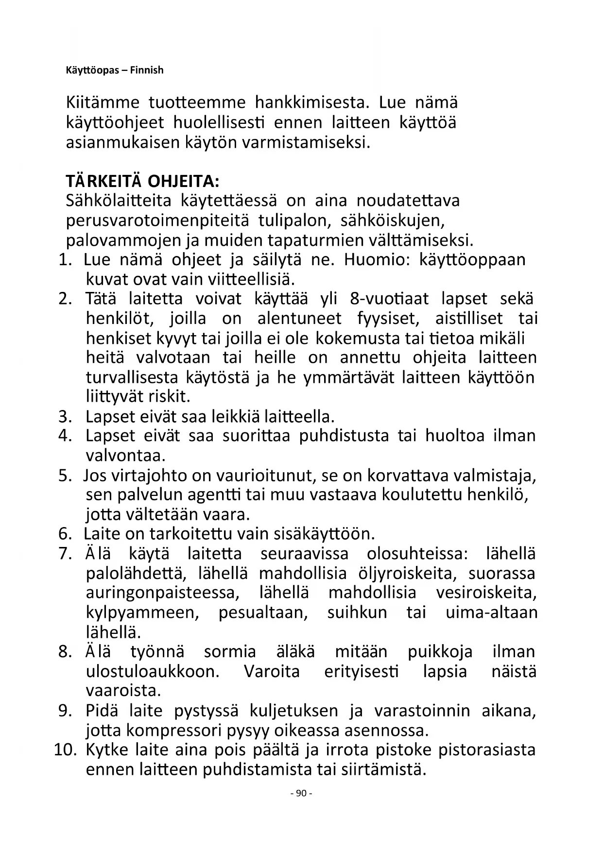 4. Lapset eivät saa suorittaa puhdistusta tai huoltoa ilman
