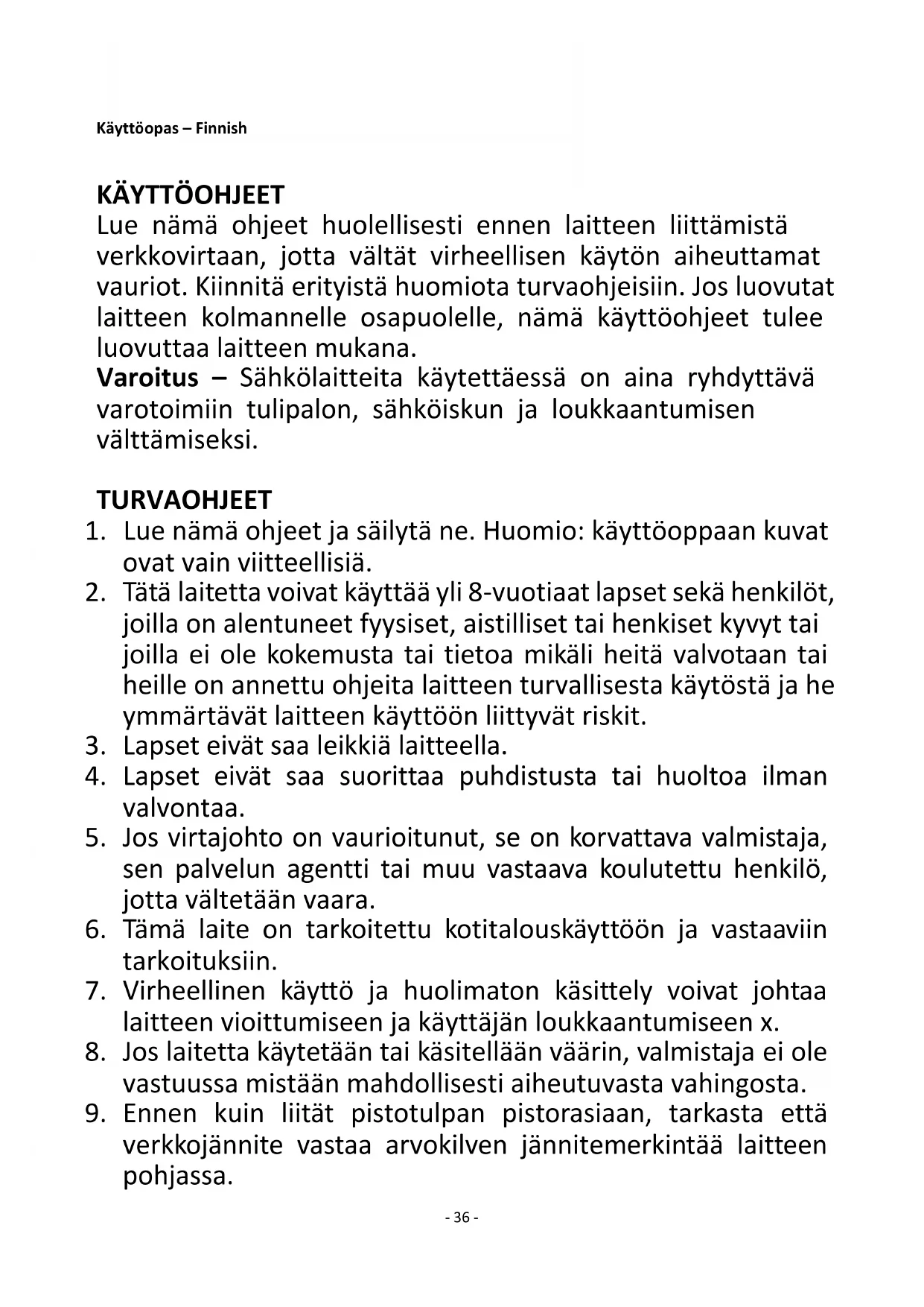 6. Tämä laite on tarkoitettu kotitalouskäyttöön ja vastaaviin