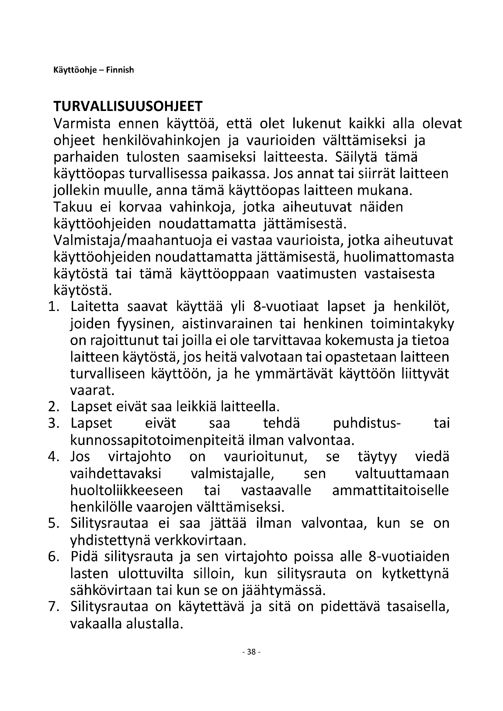 36. Rautaa tulee käyttää vakaan silityslaudan päällä.