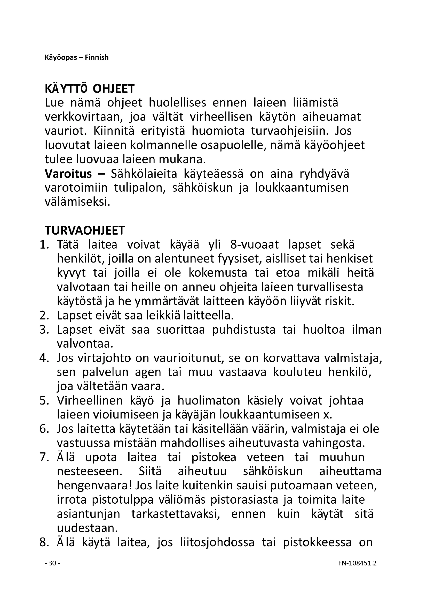 8. Älä käytä laitetta, jos liitosjohdossa tai pistokkeessa on- 31 - FN-108451.2