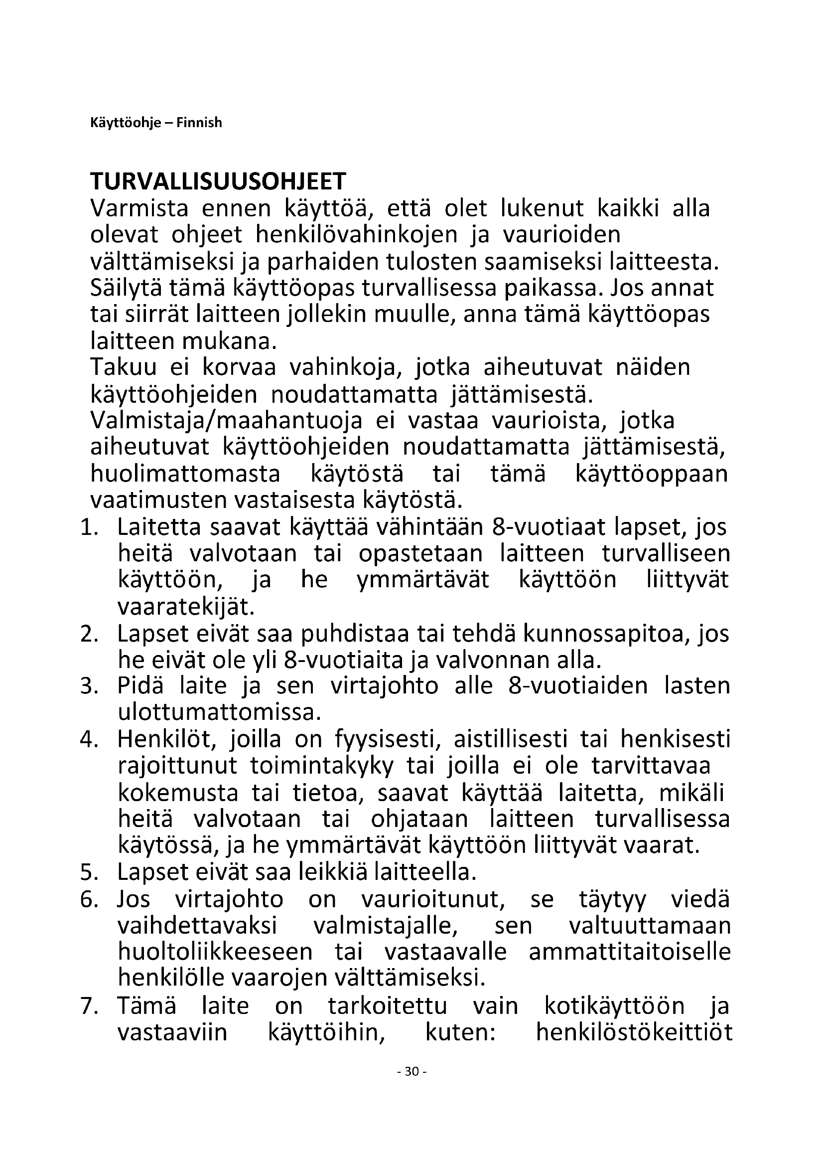 7. Tämä laite on tarkoitettu vain kotikäyttöön ja