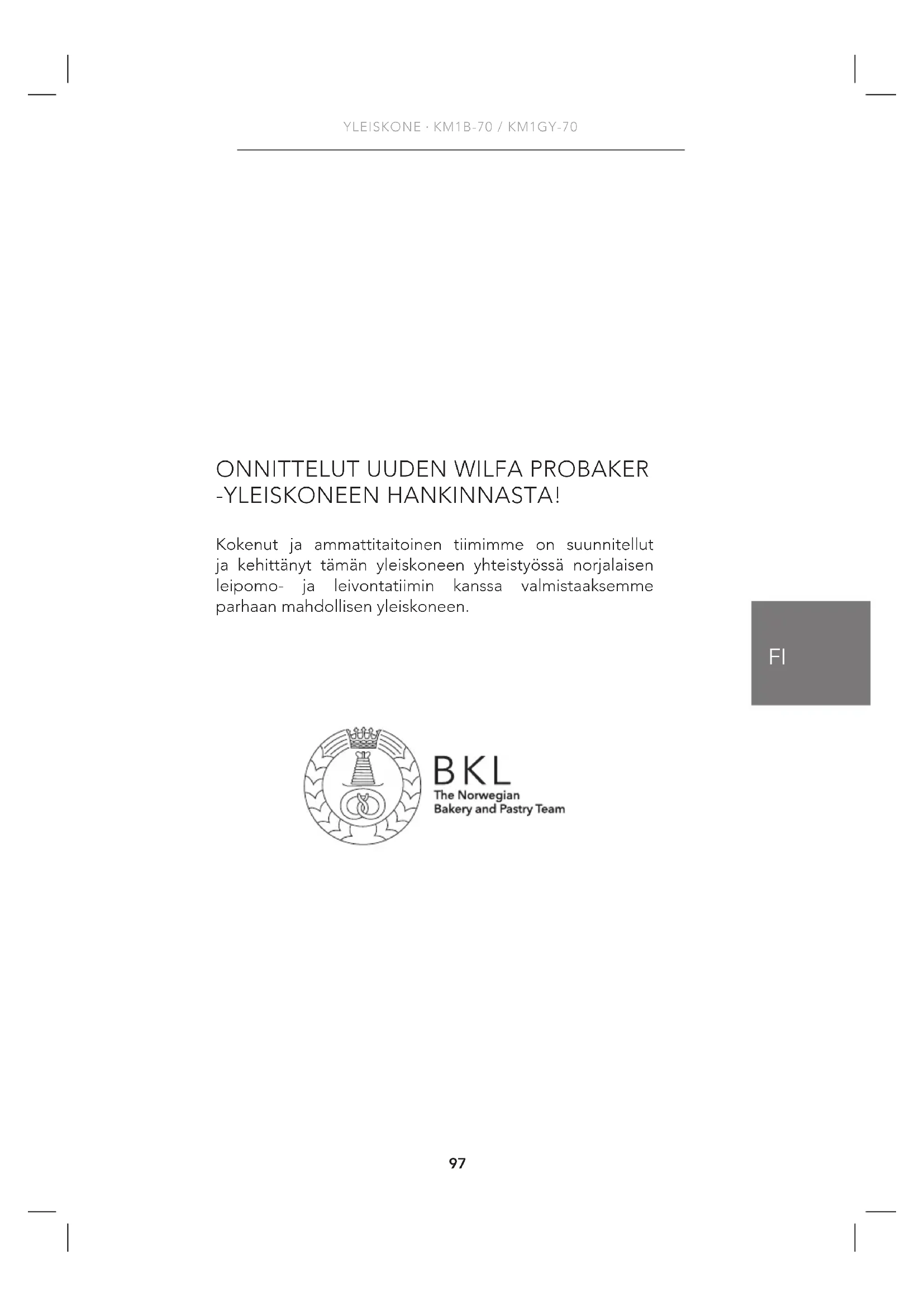 KÄYTTÖOHJE ProBaker KM1B70 WILFA