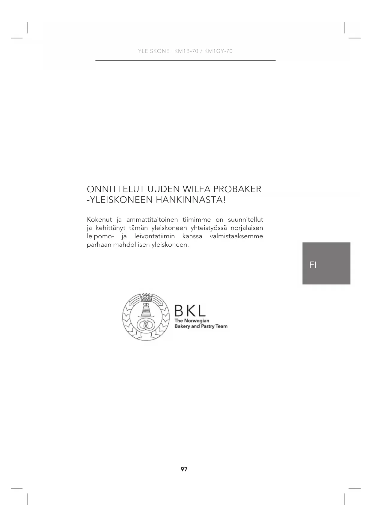 KÄYTTÖOHJE ProBaker KM1GY70 WILFA