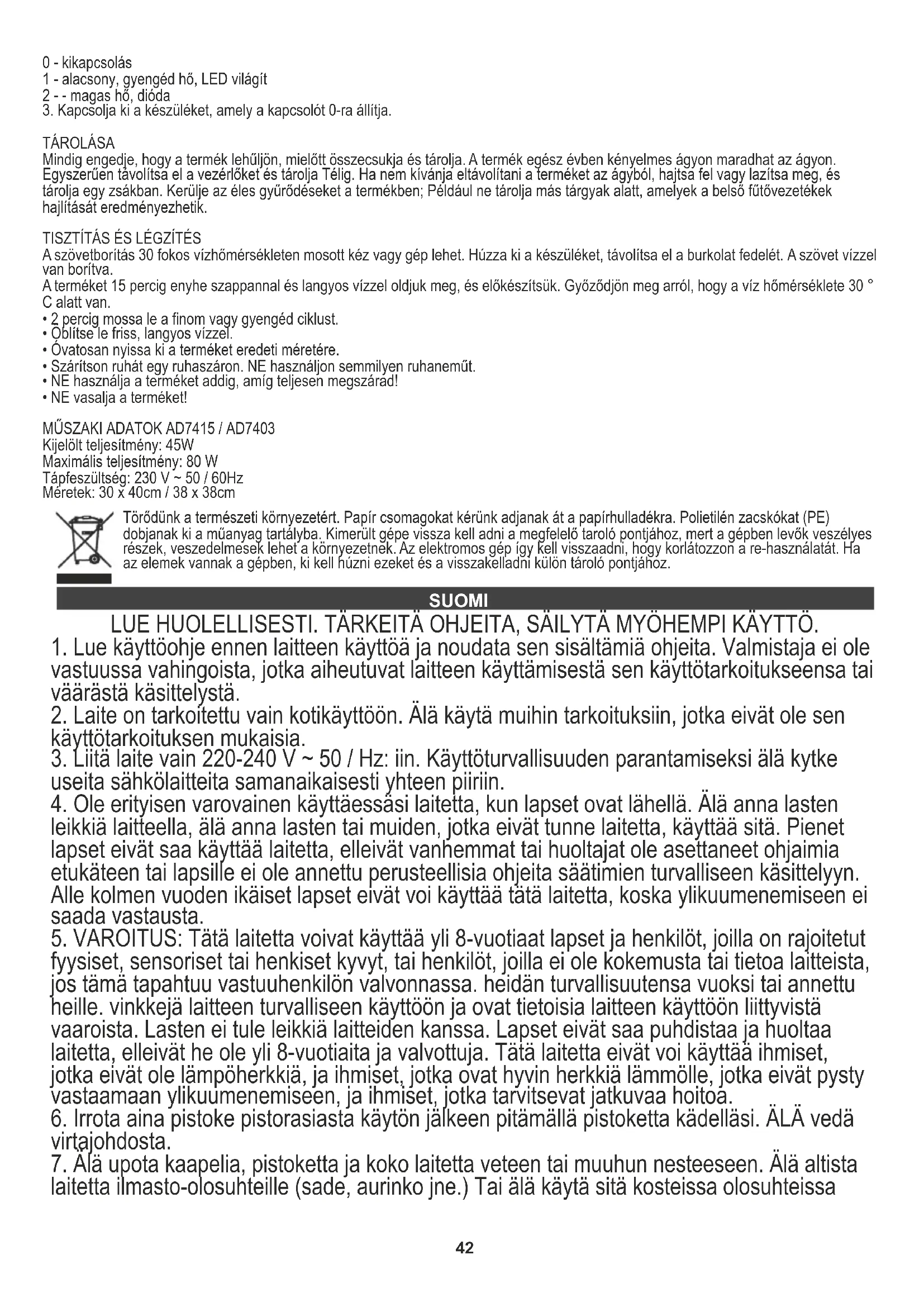 Löydä laitteen käyttöohje ilmaiseksi AD 7415 ADLER PDF-muodossa.