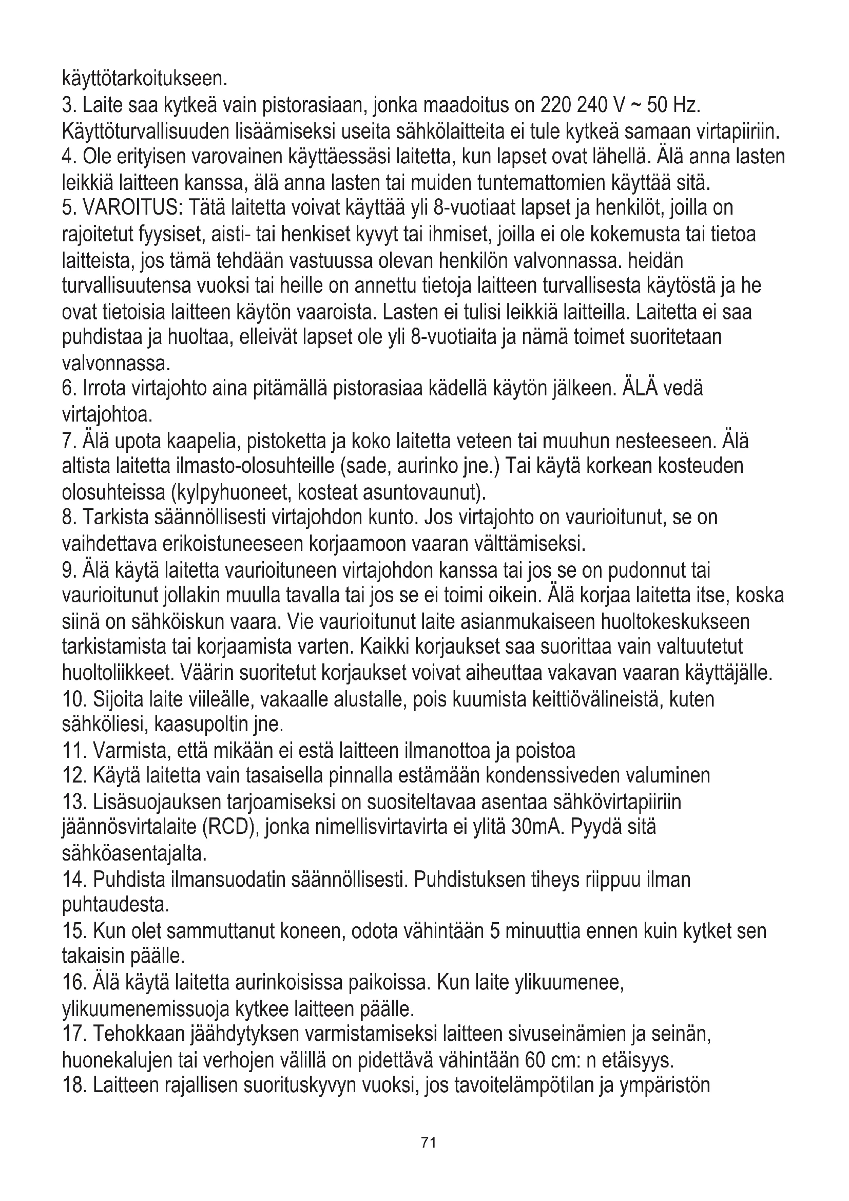 2. Laite on tarkoitettu vain kotikäyttöön. Älä käytä muihin tarkoituksiin, jotka eivät ole sen71